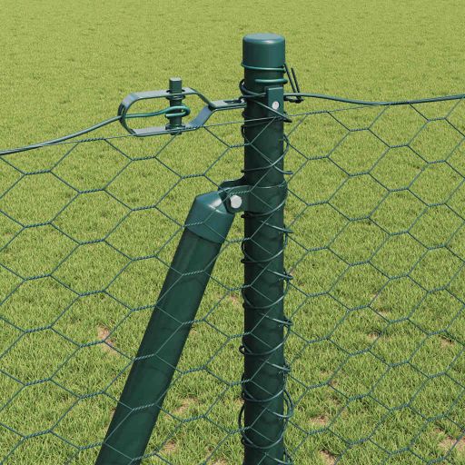 Kuusikulmainen aita Vihreä 1,2×10 m Teräs, Aitaposteja pohjalevyillä 7 kpl Ø32mm 68,5cm Galvanoitu teräs