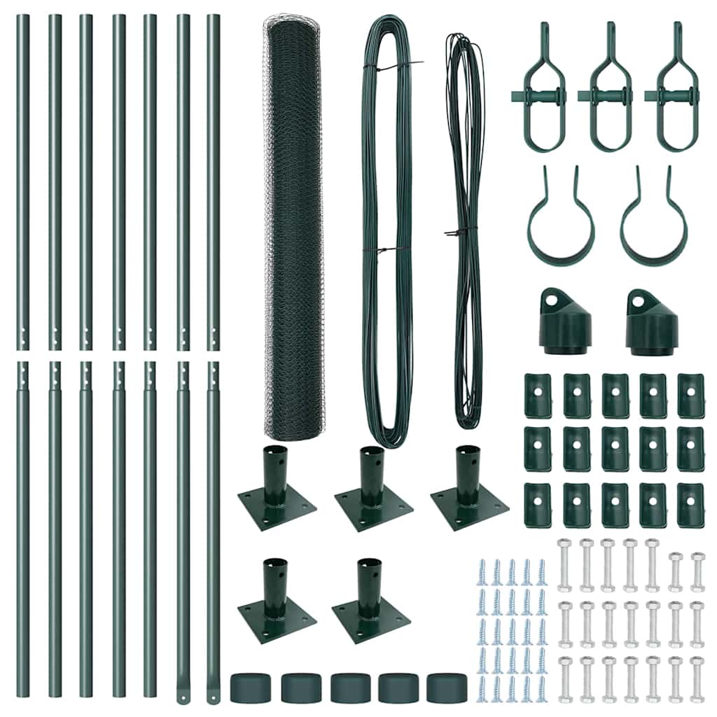 Kuusikulmainen Aita Vihreä 1,2×10 m Teräs, Aitaruuvit peruspaloilla 7 kpl Ø32mm 68,5cm Galvanoitu Teräs