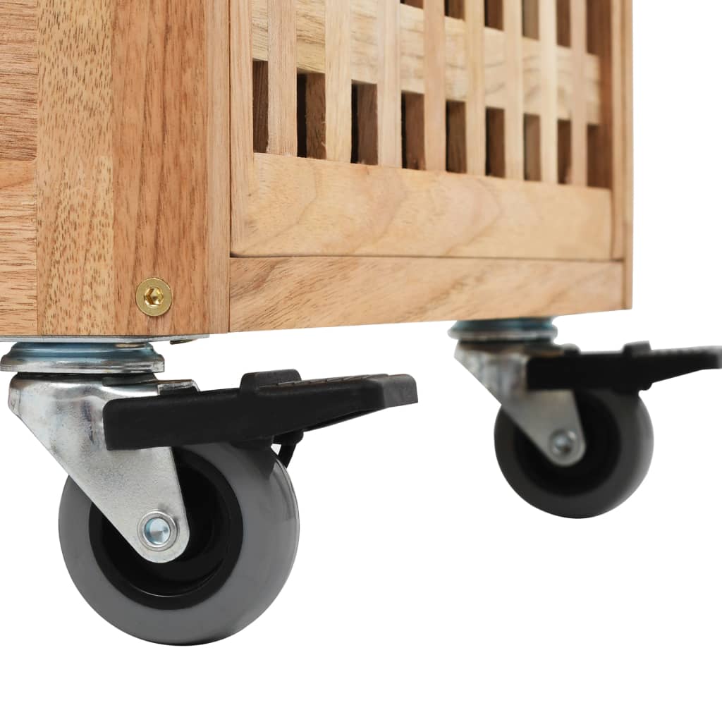 Kylpyhuoneen kaapissa on kolme koria, jotka tarjoavat runsaasti tilaa tavaroille, kuten pyyhkeille, pyykeille ja hygieniatuotteille. Ristikkosuunnittelu tarjoaa hyvän tuuletuksen sisällä oleville tavaroille. Koska se on valmistettu täydestä pähkinäpuusta ja vanerista, kaappi on todella vakaa ja kestävä. Sen neljän rullapyörän ansiosta kaappia on helppo liikuttaa.