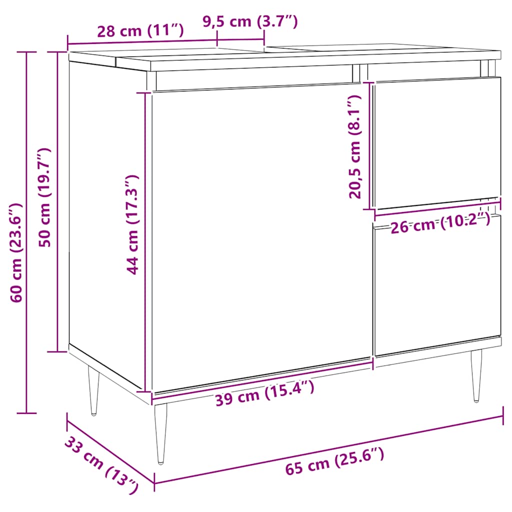 Kylpyhuoneen kaappi artesaani tammi 65x33x60 cm tekninen puu