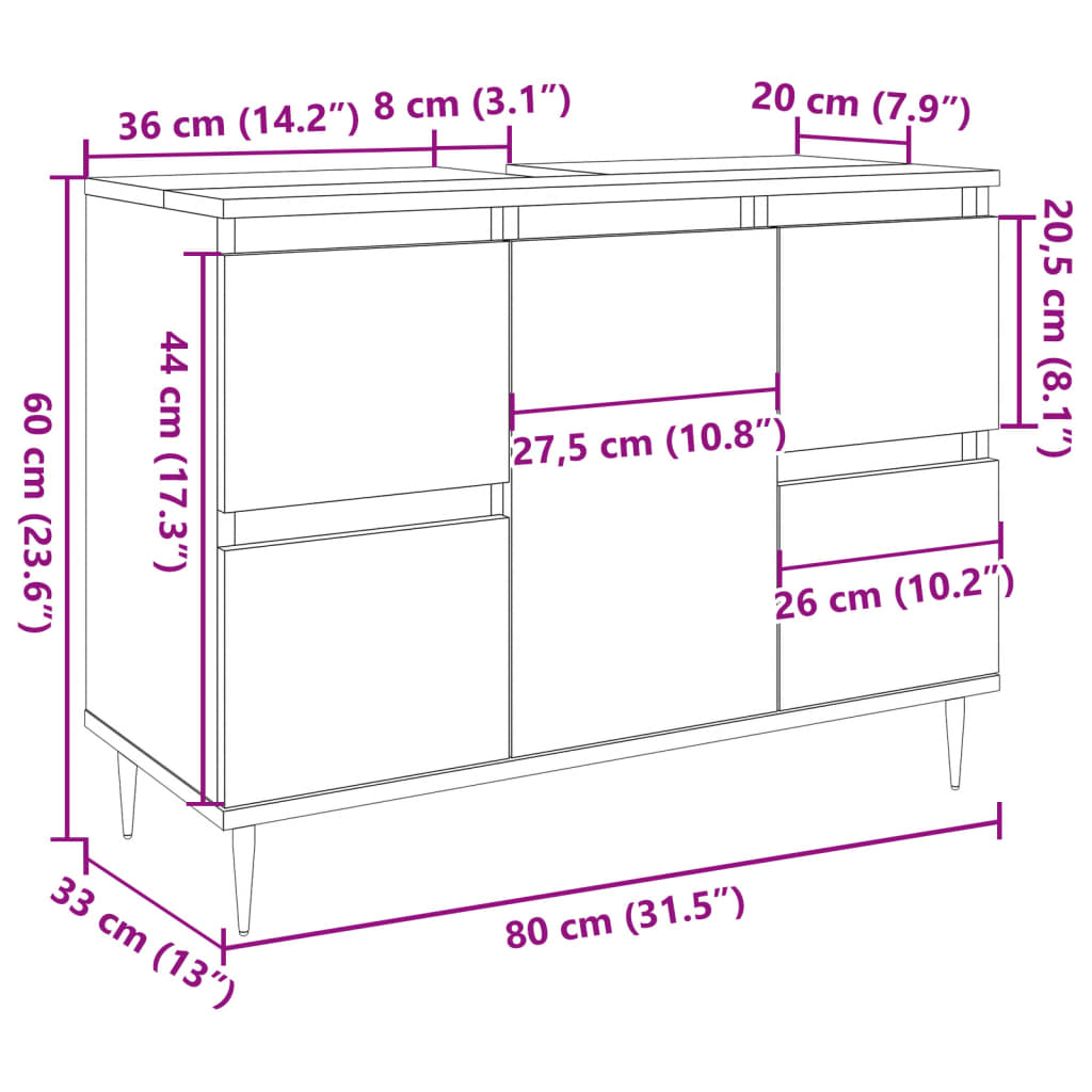 Kylpyhuoneen kaappi artesaani tammi 80x33x60 cm tekninen puu