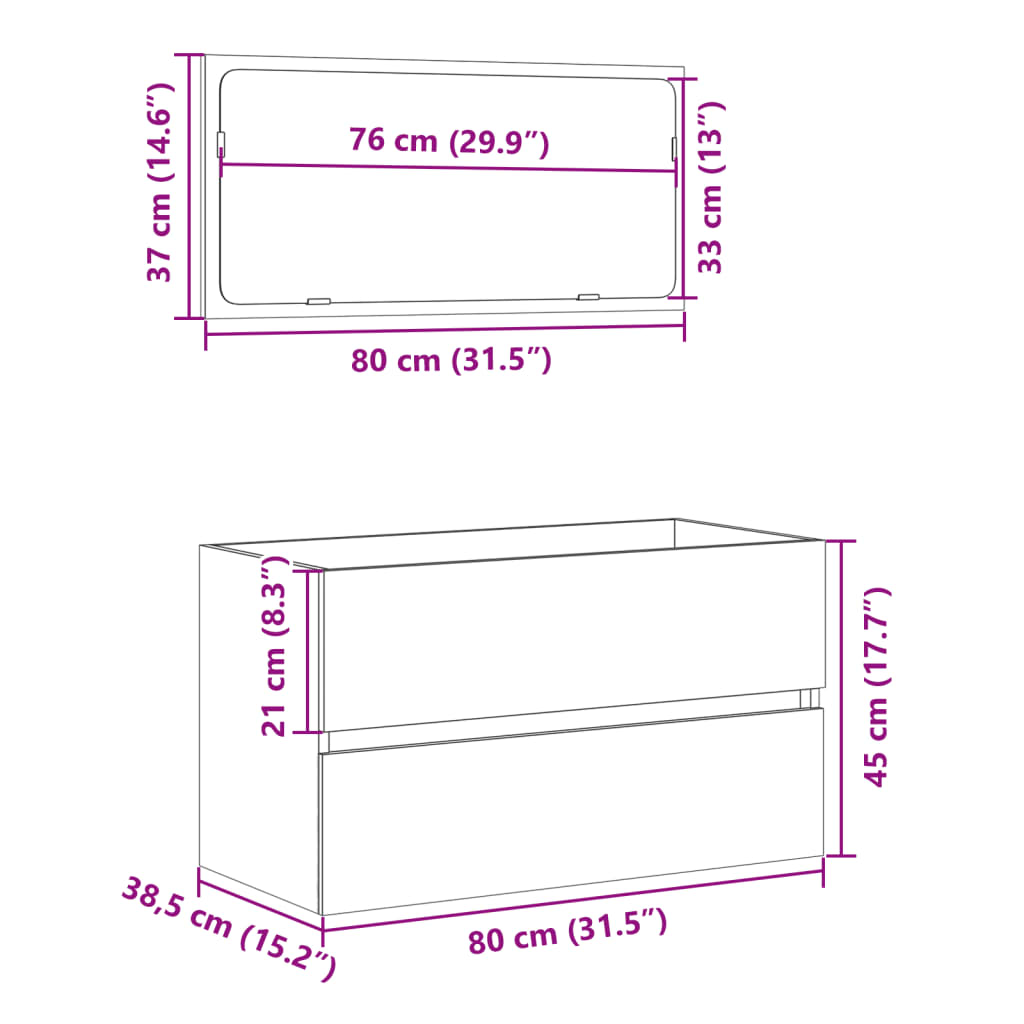• Kylpyhuonekaapin mitat: 80 x 38,5 x 45 cm (L x S x K)