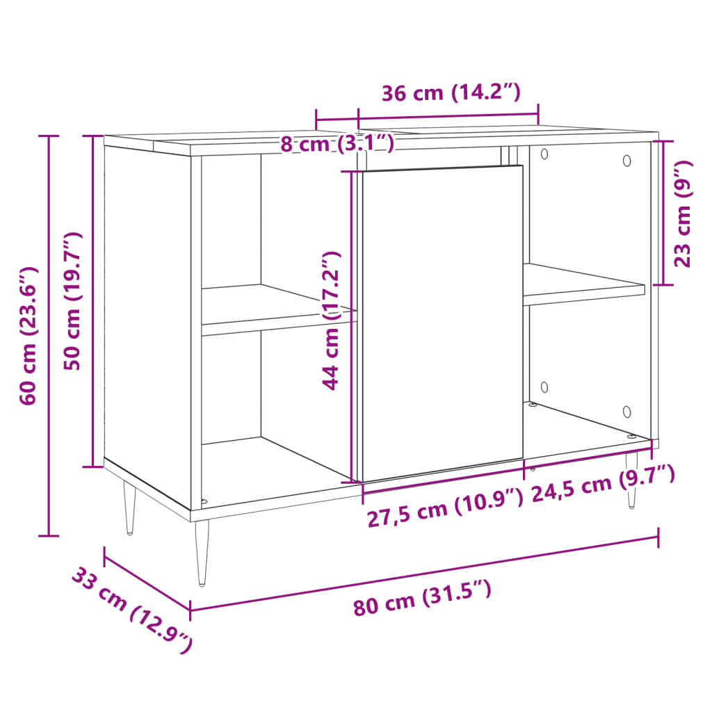 Kylpyhuoneen kaappi Sonoma-tammi 80x33x60 cm tekninen puu