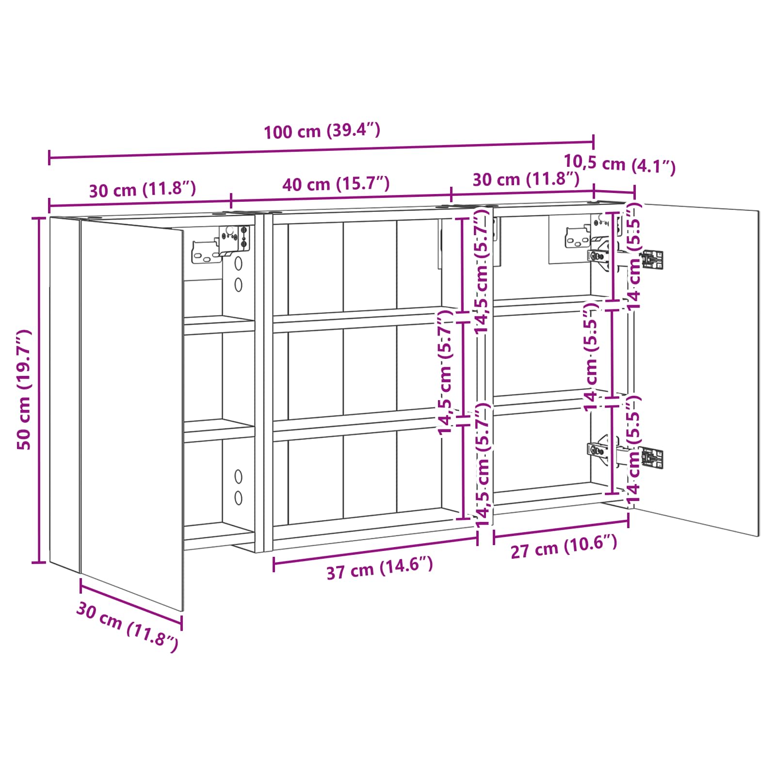 • 2 x Kylpyhuoneen peilikaappi: 30 x 10,5 x 50 cm (P x L x K)