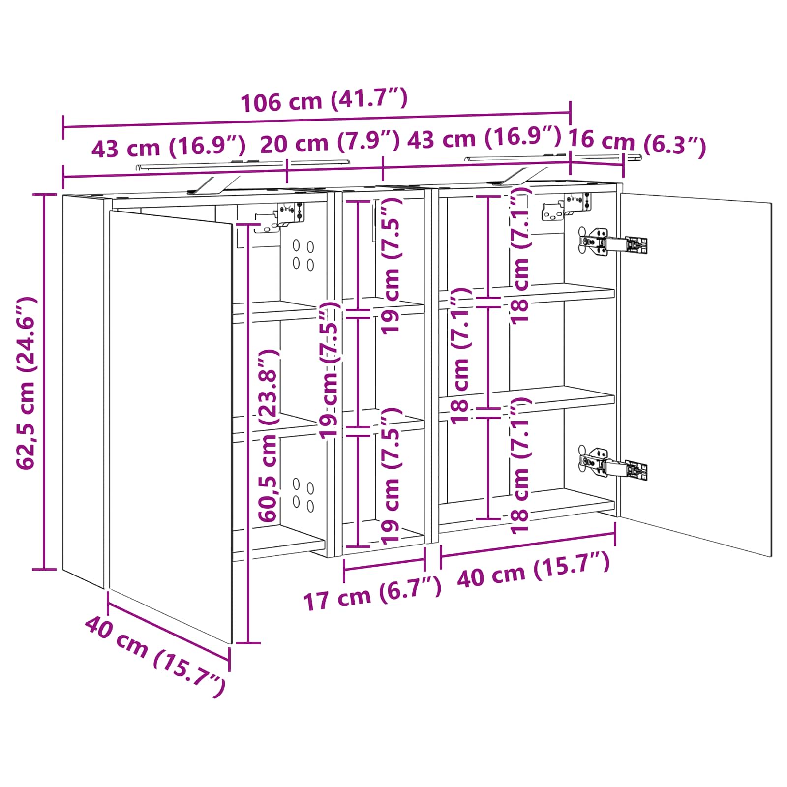 Kylpyhuoneen kaappisetti 3 pcs 106 x 16 x 62,5 cm Tekninen puu