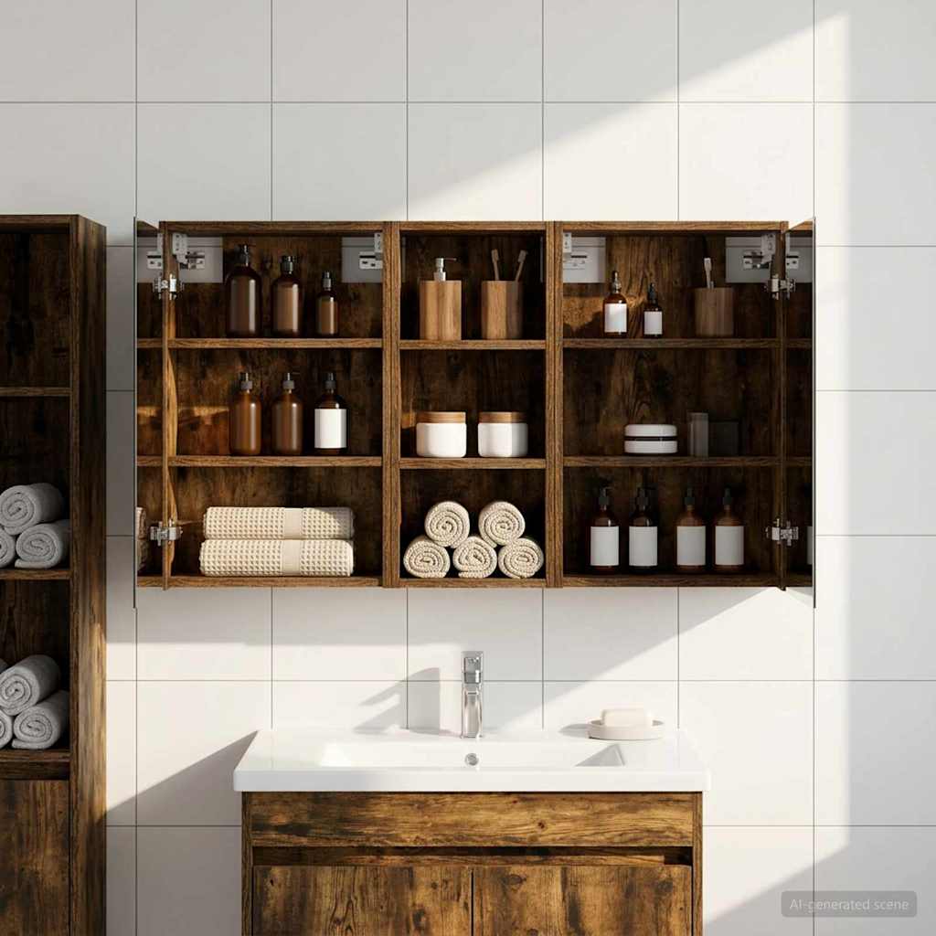 Tämä kylpyhuonekaappisarja on tyylikäs ja toimiva ratkaisu moderneille kylpyhuoneille. Tekninen puu yhdistettynä virtaviivaisiin linjoihin tekee kaapista sekä visuaalisesti tilaa lisäävän että kiehtovan ja monikäyttöisen. Se on täydellinen valinta kodinomistajille ja ammattilais-suunnittelijoille, sillä se tarjoaa reilusti säilytystilaa ja parantaa kylpyhuoneen ilmettä minimalistisella muotoilullaan sekä tehokkaalla LED-valaistuksella. Se on toiminnallisuuden ja muotoilun täydellinen yhdistelmä.