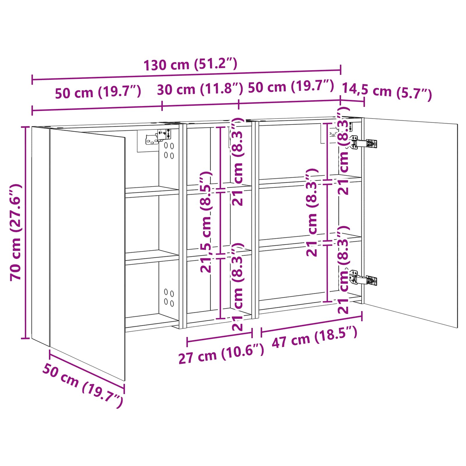 • 2 x Kylpyhuoneen peilikaappi: 50 x 14,5 x 70 cm (P x L x K)