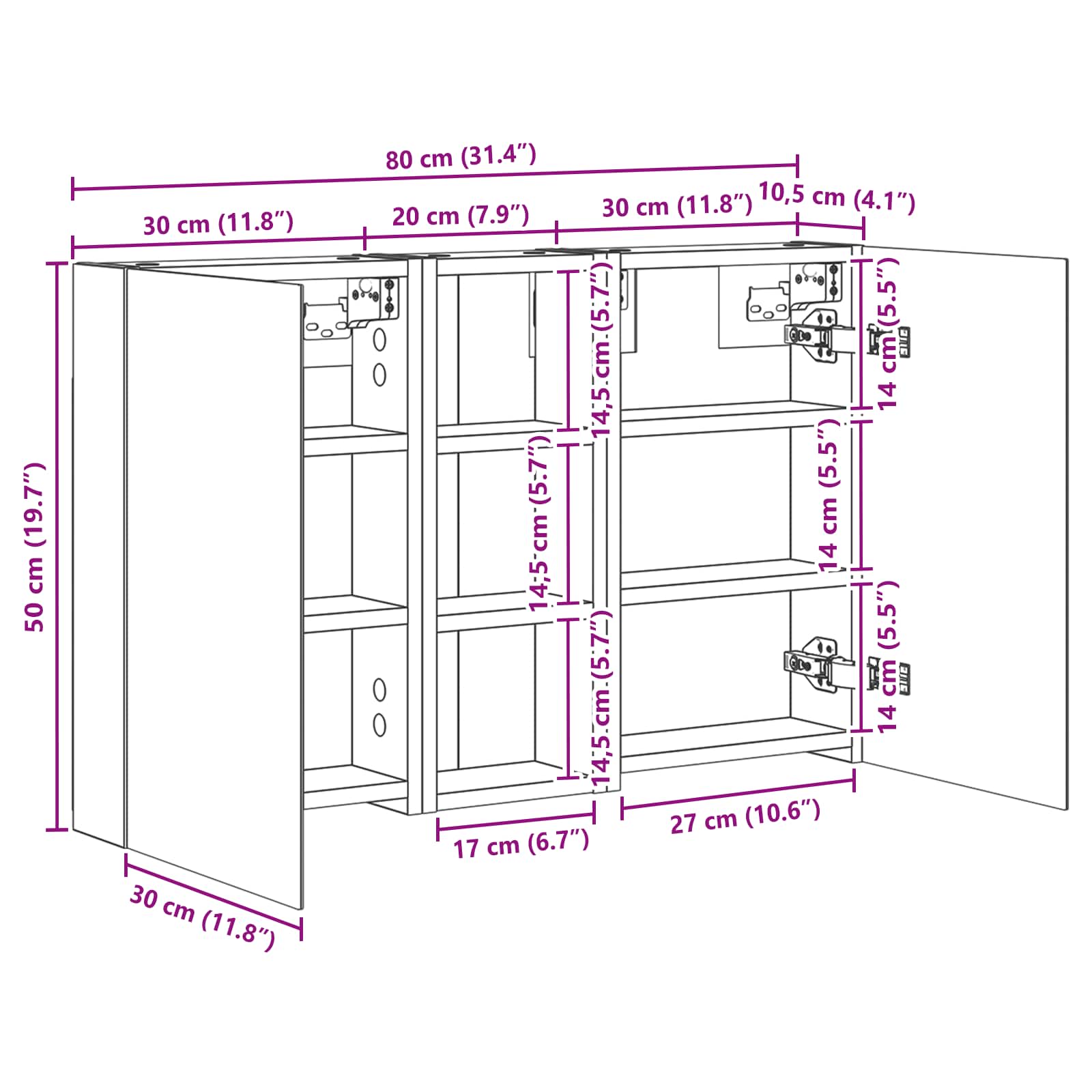 • 2 x Kylpyhuoneen peilikaappi: 30 x 10,5 x 50 cm (P x L x K)