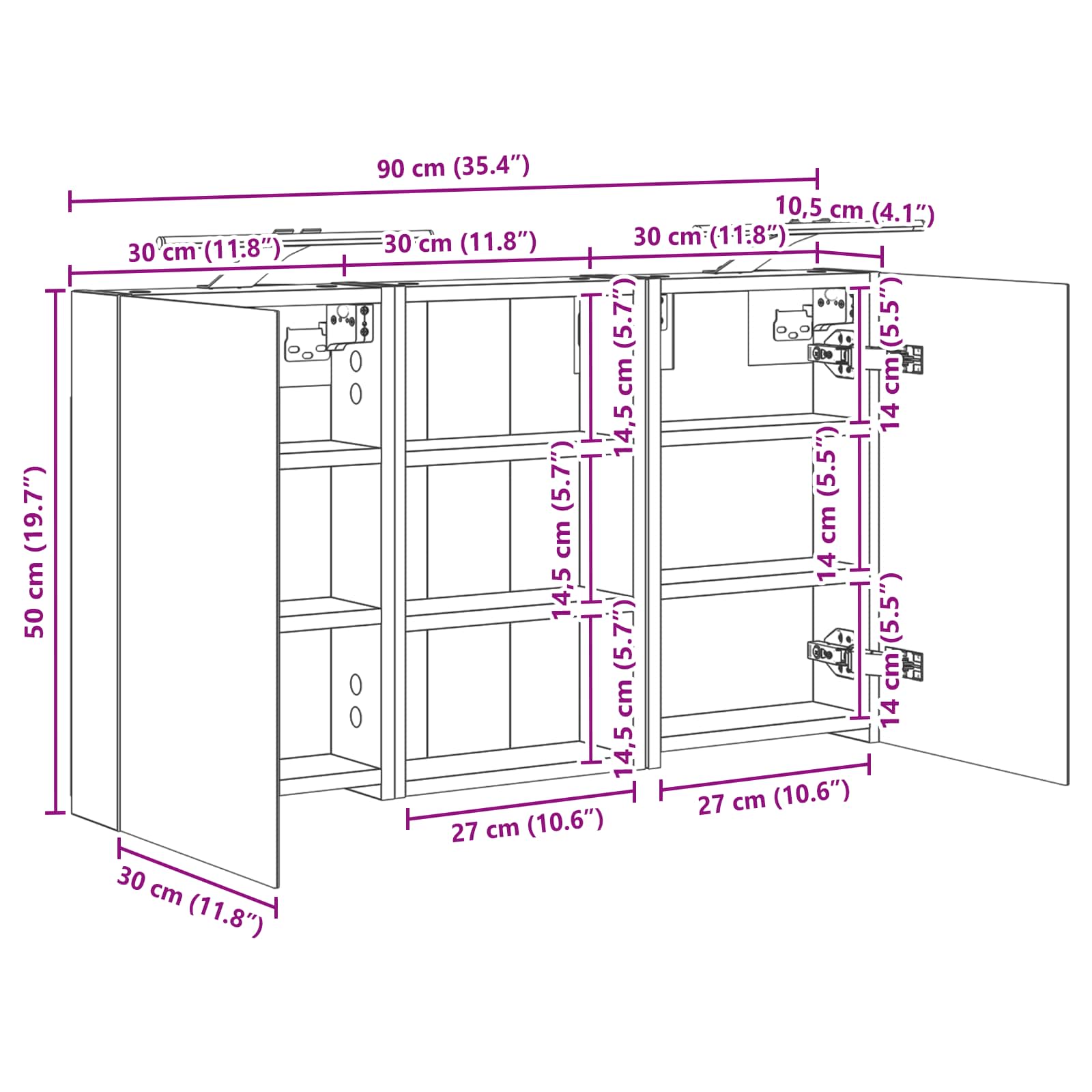 • 2 x Kylpyhuoneen peilikaappi: 30 x 10,5 x 50 cm (P x L x K)