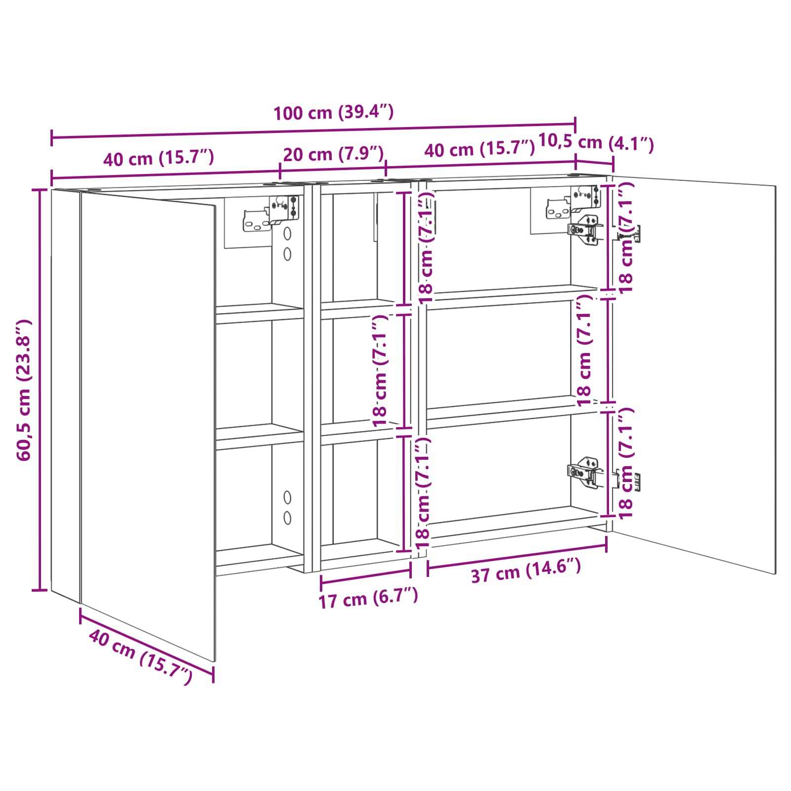 • 2 x Kylpyhuoneen peilikaappi: 40 x 10,5 x 60,5 cm (P x L x K)