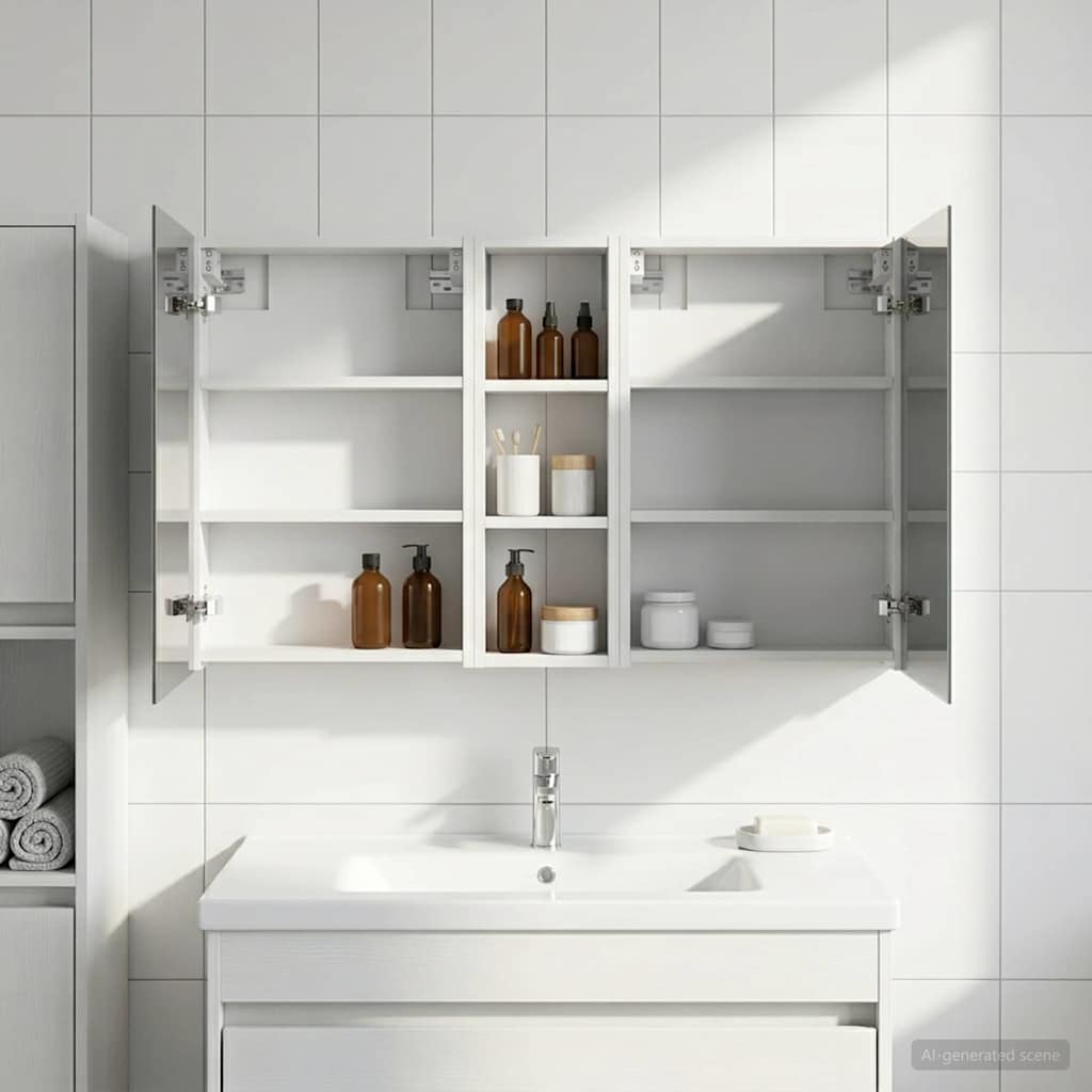 Tämä moderni kylpyhuonekaappi yhdistää tyylikästä muotoilua ja käytännöllisyyttä. Se toimii sekä säilytysratkaisuna että kauniina sisustuselementtinä, ja se sointuu helposti nykytyylisiin kylpyhuoneisiin. Sen seinäasennus säästää lattiatilaa ja antaa helpon pääsyn kaikkiin tarpeellisiin juttuihin. Kaappi tuo kylpyhuoneeseen raikasta tunnelmaa kaksisuuntaisen peilin ja LED-valojen avulla, luoden mukautuvan ympäristön päivittäisille rutiineille.