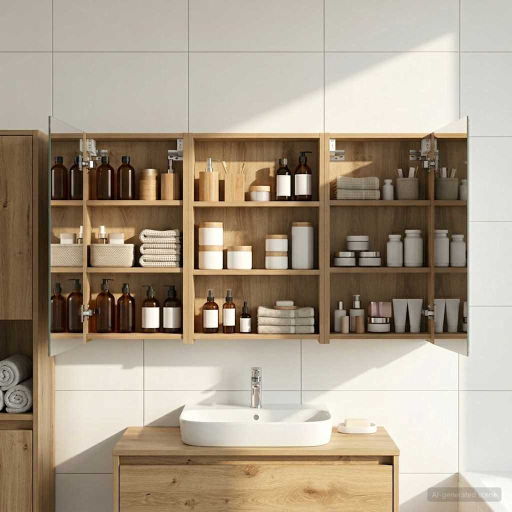 • Runsaasti säilytystilaa Kaappi tarjoaa paljon säilytystilaa hyllyjen ja ovien ansiosta. Hyvä järjestely helpottaa asioiden löytämistä ja pitää kylpyhuoneen siistinä.