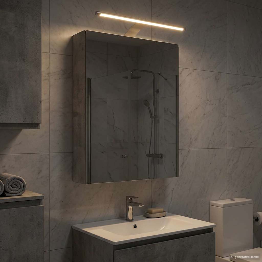 Tämä moderni kylpyhuoneen peilikaappi on tyylikäs ja käytännöllinen ratkaisu kaikkiin säilytystarpeisiisi. Yksinkertainen muotoilu ja selkeät linjat parantavat kylpyhuoneen tyyliä. Kaappi tarjoaa mukavasti tilaa perushyödykkeille, ja kaksisuuntainen peili tuo lisämukavuutta ja tyyliä.