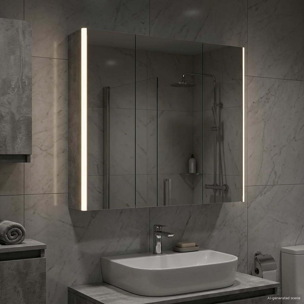 Tämä moderni kylpyhuoneen peilikaappi yhdistää tyylikkään muotoilun ja käytännölliset ominaisuudet, tehden siitä oleellisen lisän nykyaikaiseen kylpyhuoneeseen. Minimalistinen rakenne ja puhtaat linjat tarjoavat hienostuneen ilmeen, mutta kaappi on myös täynnä säilytystilaa päivittäisille tarvikkeille. Valaistus parantaa näkyvyyttä ja tunnelmaa, yhdistäen käytännöllisyyden ja muotoilun.