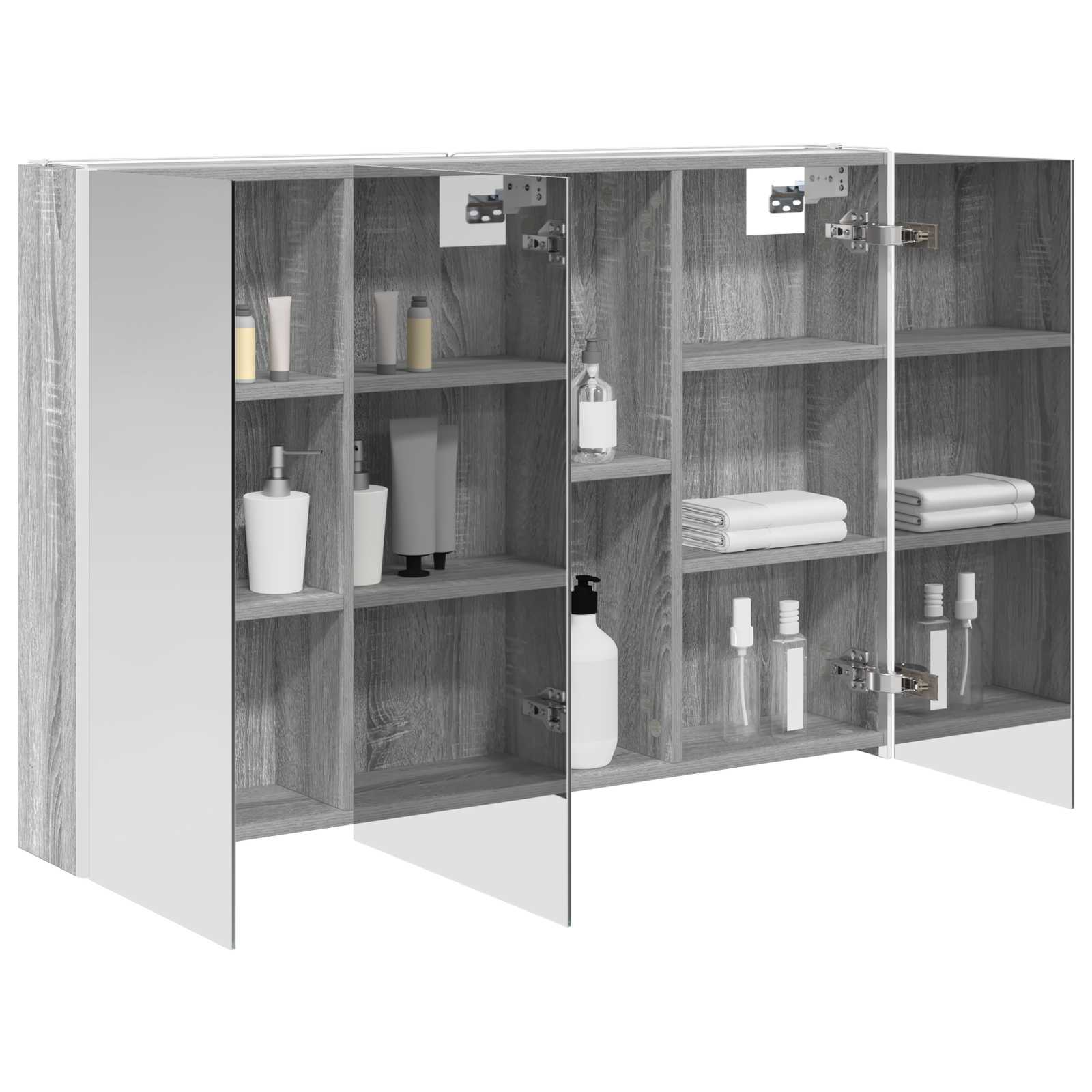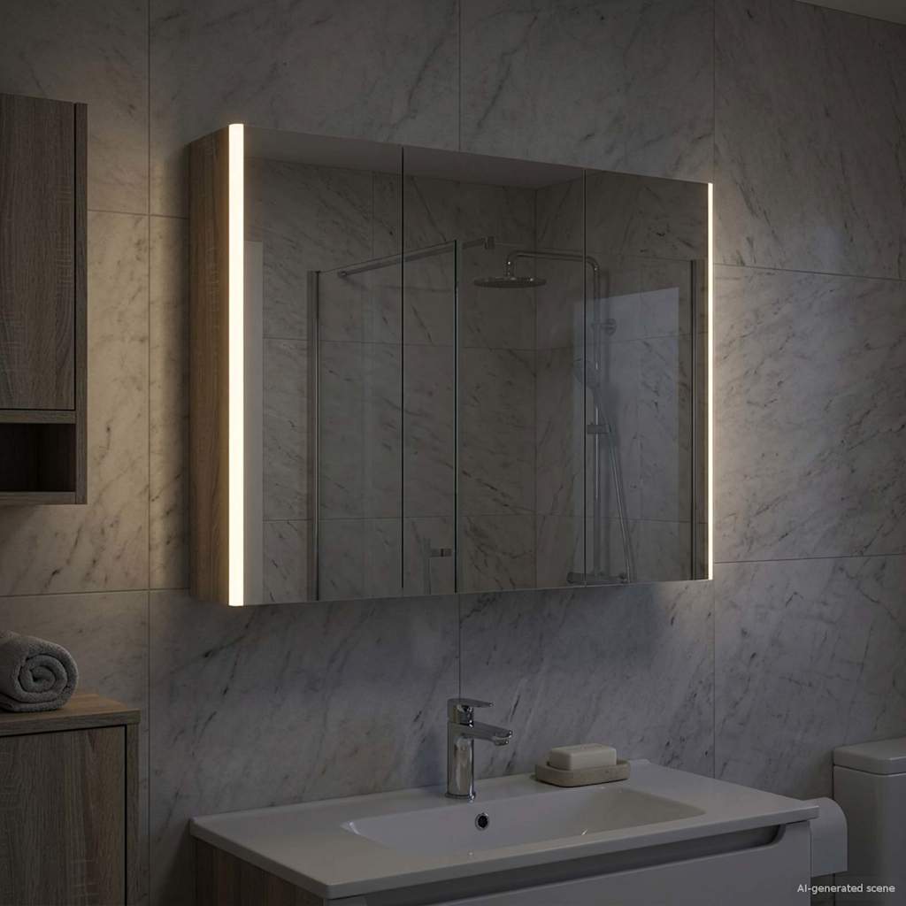 Tämä moderni kylpyhuoneen peilikaappi yhdistää tyylikkään muotoilun ja käytännölliset ominaisuudet, tehden siitä oleellisen lisän nykyaikaiseen kylpyhuoneeseen. Minimalistinen rakenne ja puhtaat linjat tarjoavat hienostuneen ilmeen, mutta kaappi on myös täynnä säilytystilaa päivittäisille tarvikkeille. Valaistus parantaa näkyvyyttä ja tunnelmaa, yhdistäen käytännöllisyyden ja muotoilun.