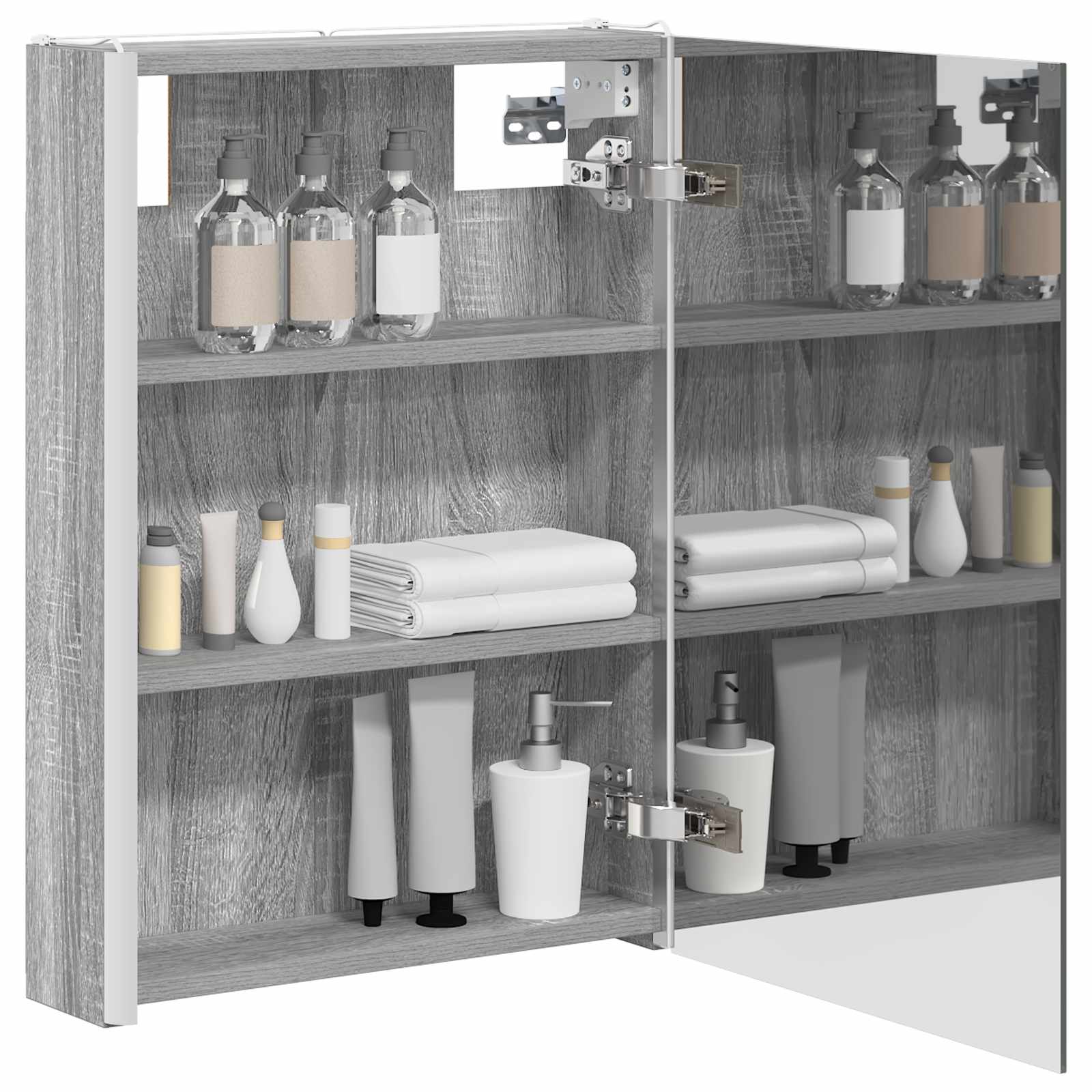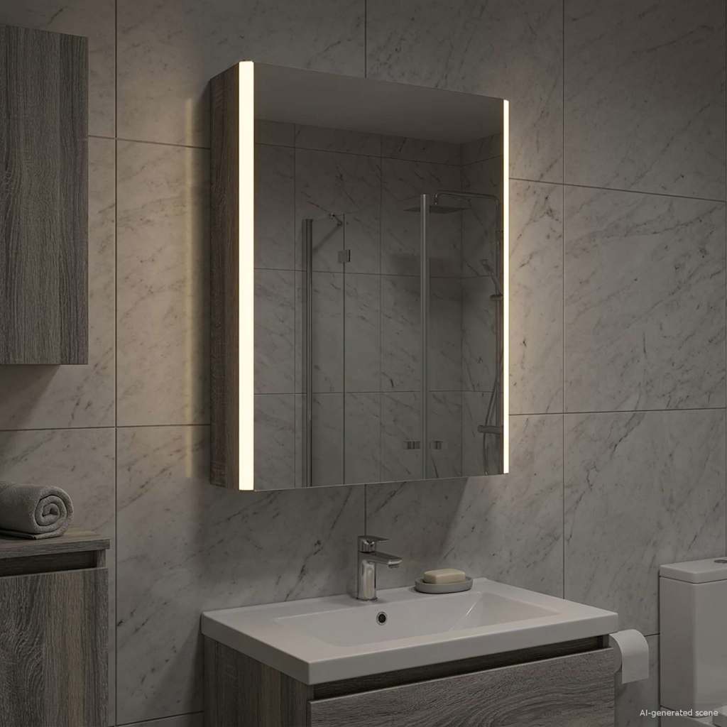 Tämä moderni kylpyhuoneen peilikaappi yhdistää tyylikkään muotoilun ja käytännölliset ominaisuudet, tehden siitä oleellisen lisän nykyaikaiseen kylpyhuoneeseen. Minimalistinen rakenne ja puhtaat linjat tarjoavat hienostuneen ilmeen, mutta kaappi on myös täynnä säilytystilaa päivittäisille tarvikkeille. Valaistus parantaa näkyvyyttä ja tunnelmaa, yhdistäen käytännöllisyyden ja muotoilun.