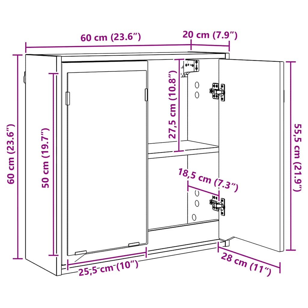 Kylpyhuoneen Peilikaappi hyllyllä Betoni Harmaa 60 x 20 x 60 cm