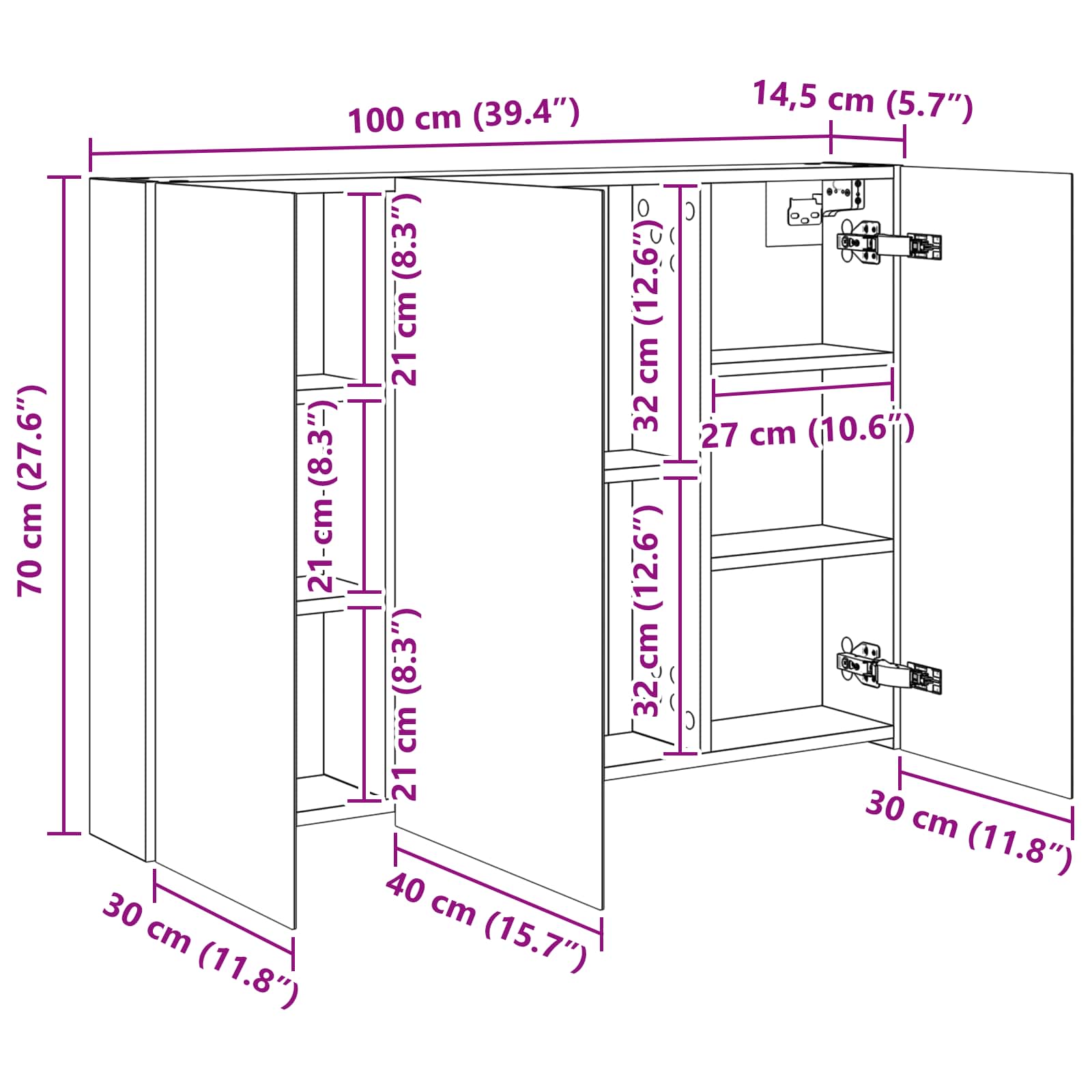 Kylpyhuoneen Peilikaappi hyllyllä Taidekoivu 100 x 14,5 x 70 cm