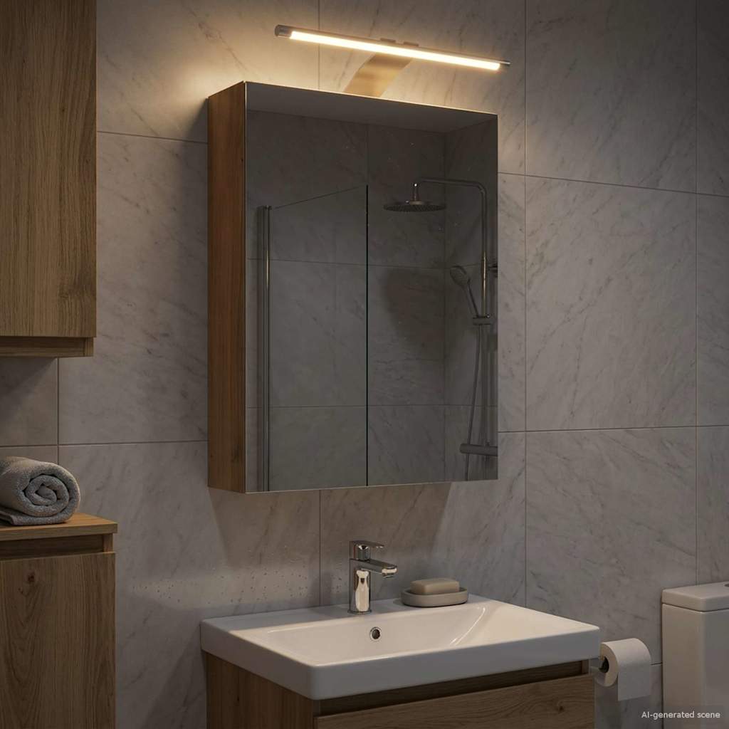 Tämä moderni kylpyhuoneen peilikaappi on tyylikäs ja käytännöllinen ratkaisu kaikkiin säilytystarpeisiisi. Yksinkertainen muotoilu ja selkeät linjat parantavat kylpyhuoneen tyyliä. Kaappi tarjoaa mukavasti tilaa perushyödykkeille, ja kaksisuuntainen peili tuo lisämukavuutta ja tyyliä.
