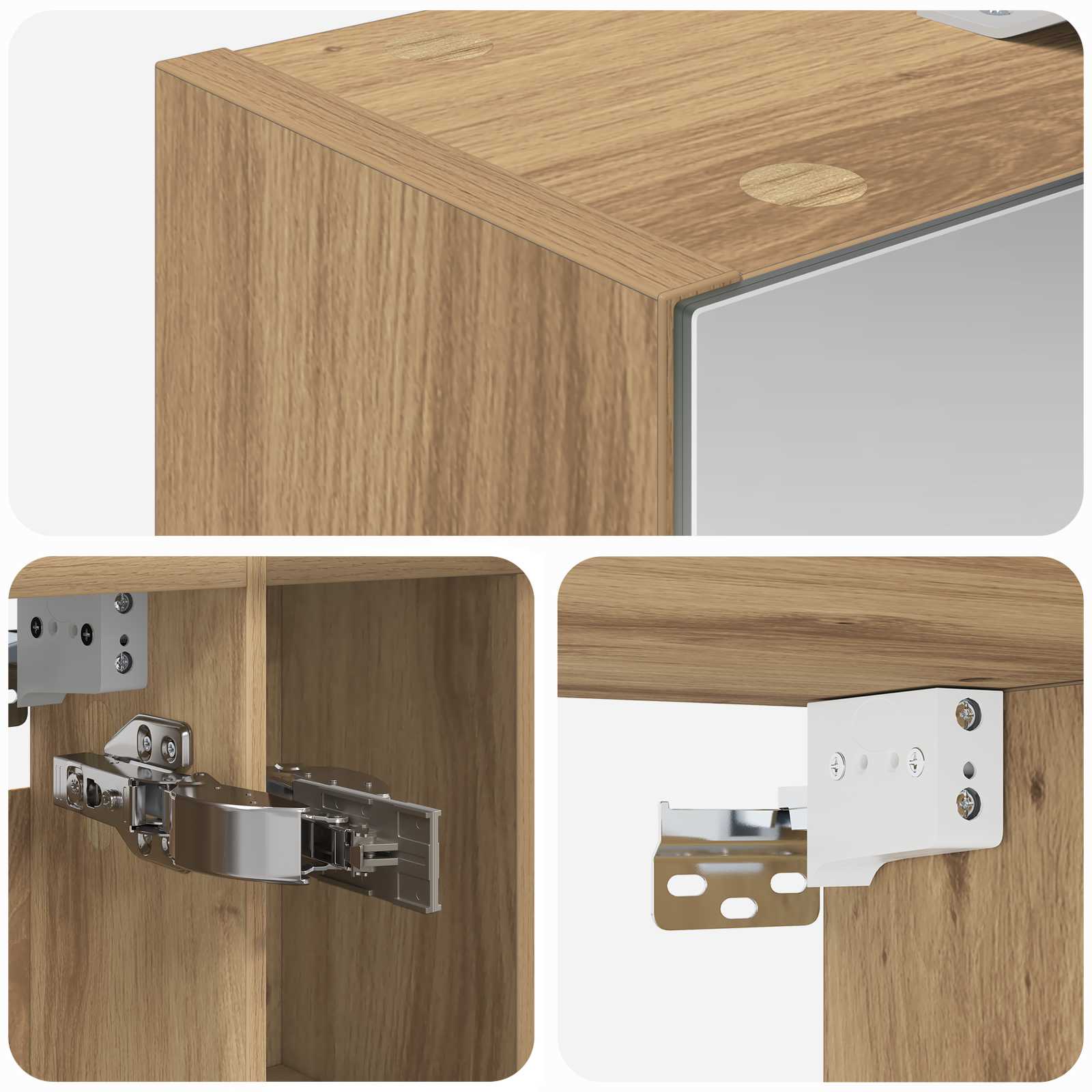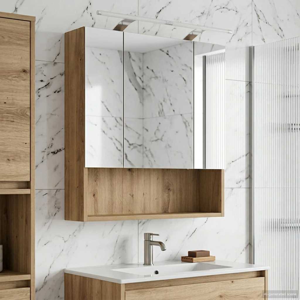 Tämä moderni kylpyhuoneen peilikaappi on hieno huonekalu, joka parantaa minkä tahansa kylpyhuoneen ilmettä. Suorakaiteen muotoinen rakenne ja seinäasennus ovat täydellisiä, jos haluat maksimoida sekä tyylin että toiminnallisuuden. Kaapissa on kaksisuuntainen peili, joka tuo sekä yksityisyyttä että eleganssia – täydellinen aamurutiineihin modernissa kylpyhuoneessa.