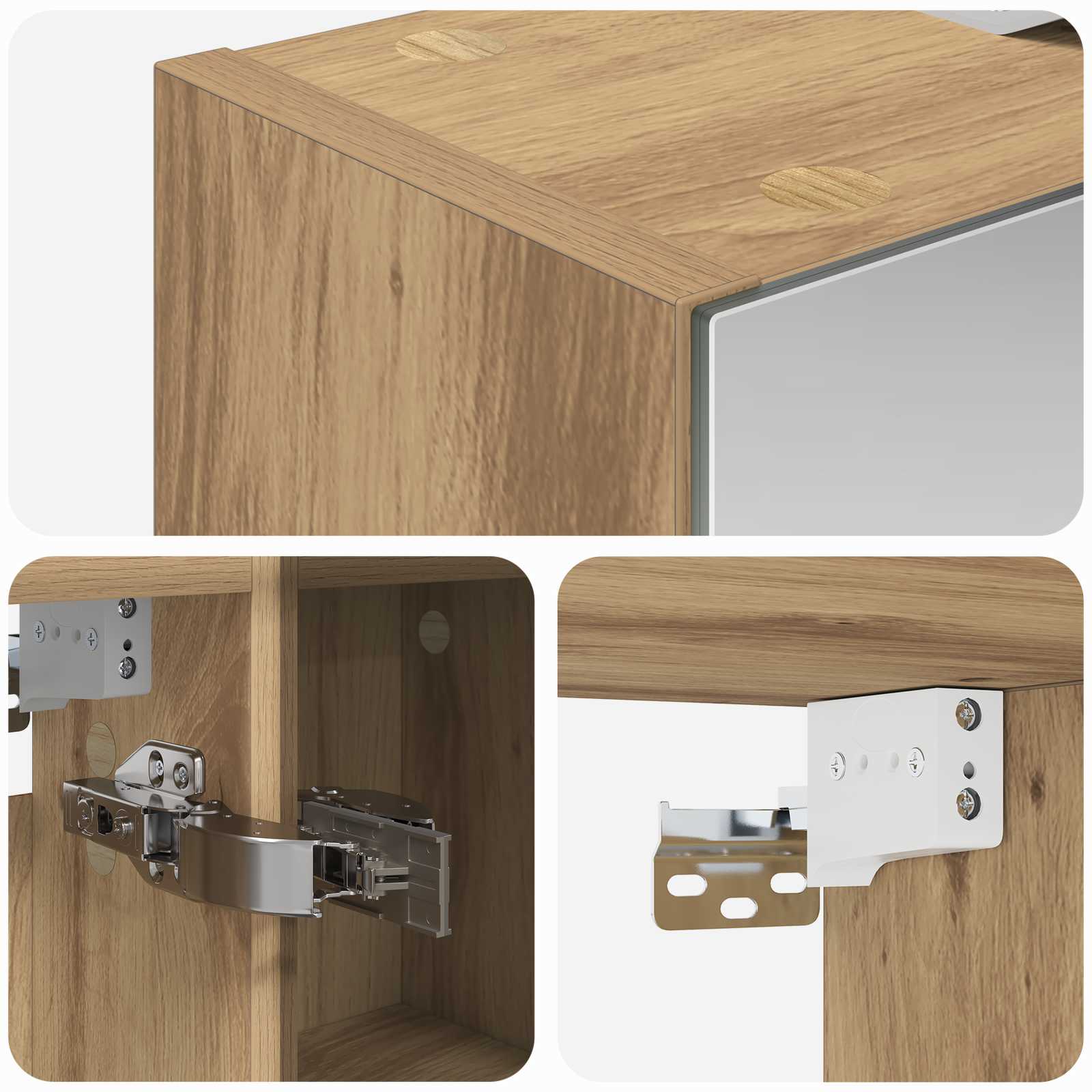 • Seinäkiinnitys: Seinäkiinnitettävä kaappi säästää lattiapinta-alaa ja antaa vakautta. Tämän ansiosta siivous on helpompaa ja tilankäyttö on optimaalista, jolloin kaappi parantaa kylpyhuoneen siisteyttä tyylikkäästi.