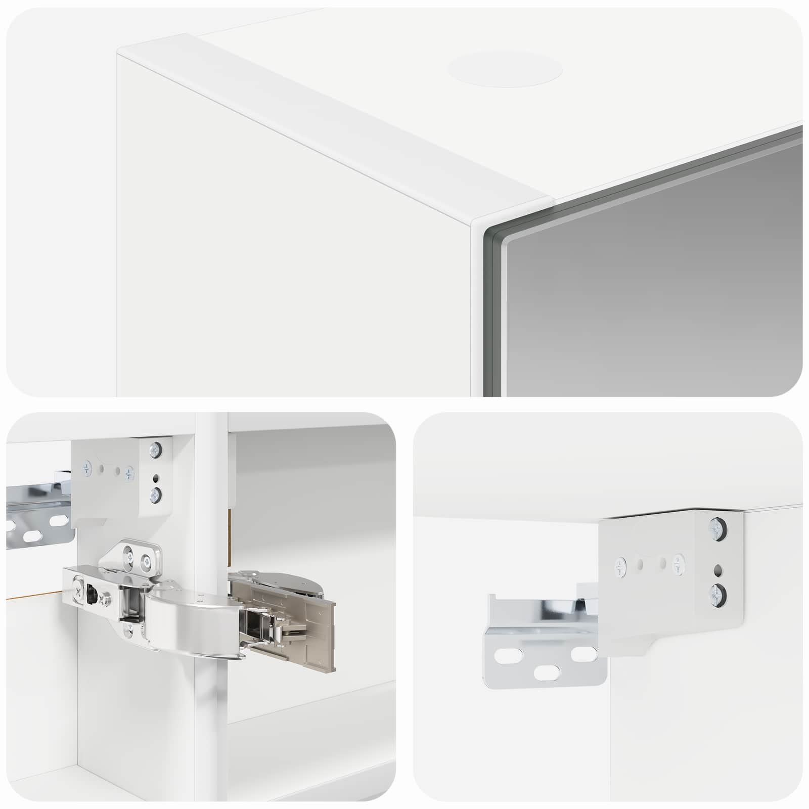 • Kaksisuuntainen Peili: Innovatiivinen kaappi, joka toimii sekä tavallisena peilinä että säästää tilaa huomaamattomilla heijastuksilla. Täydellinen vaihtoehto erilaisiin käyttötarkoituksiin.