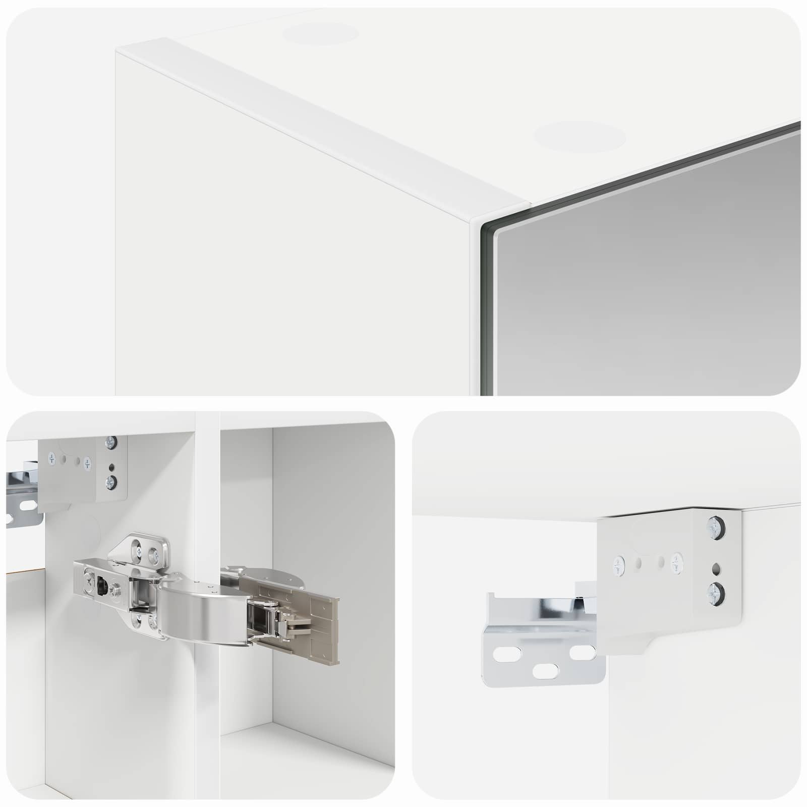 • Included Components: Kaappi tulee laattahyllyjen ja saranakannen kanssa, jotka auttavat järjestämään kylpyhuoneen tärkeimmät tavarat. Laattahyllyt soveltuvat monenlaisille esineille, hygieniatuotteista vara-pyyhkeisiin, ja saranakansi tekee avaamisesta ja sulkemisesta helppoa. Peili tarjoaa myös kaksisuuntaisen heijastuksen.