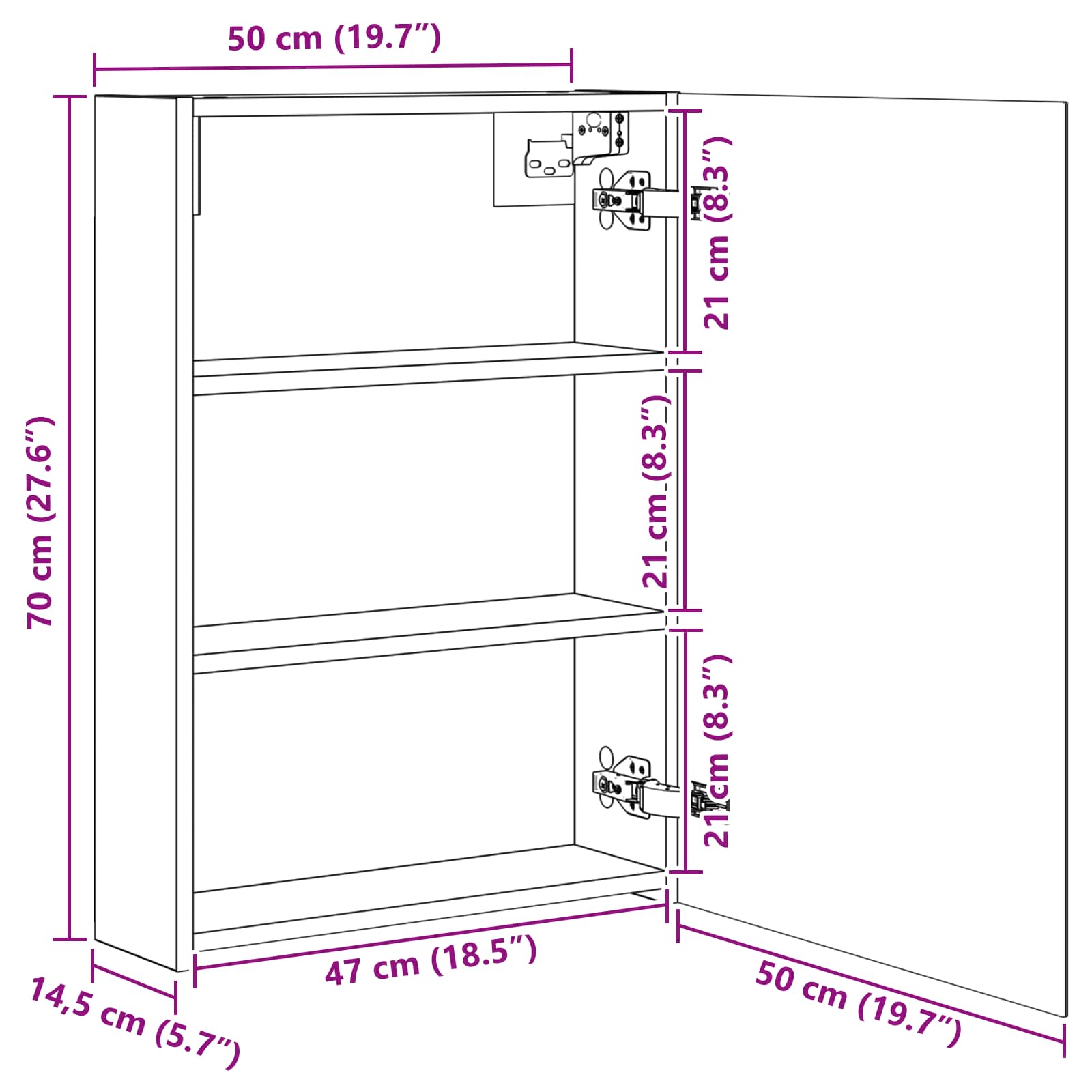 • Yleiset mitat: 50 x 14,5 x 70 cm (P x L x K)