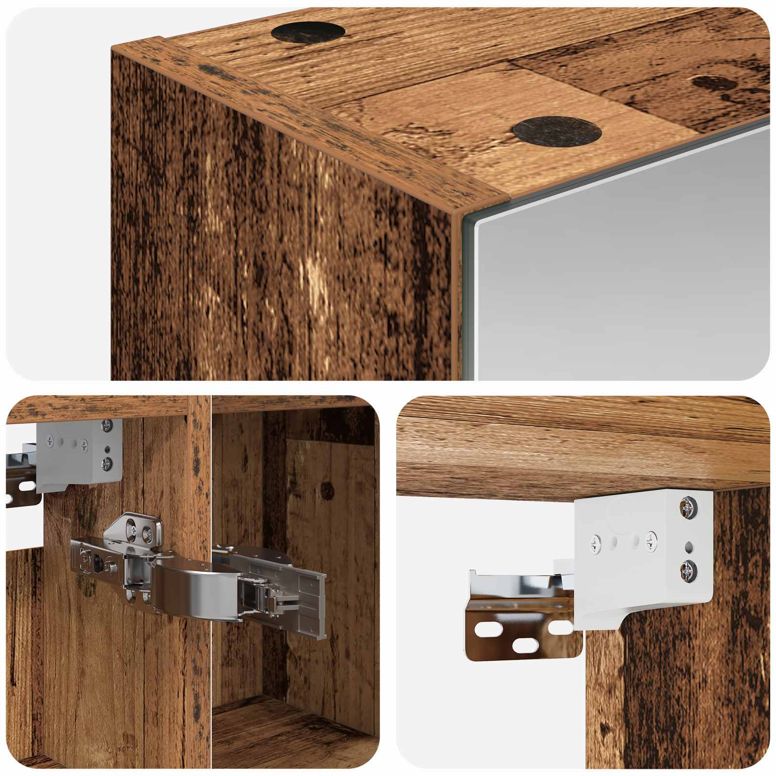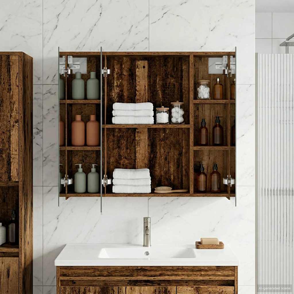 Kylpyhuoneen Peilikaappi hyllyllä Vanha puu 80 x 14.5 x 70 cm