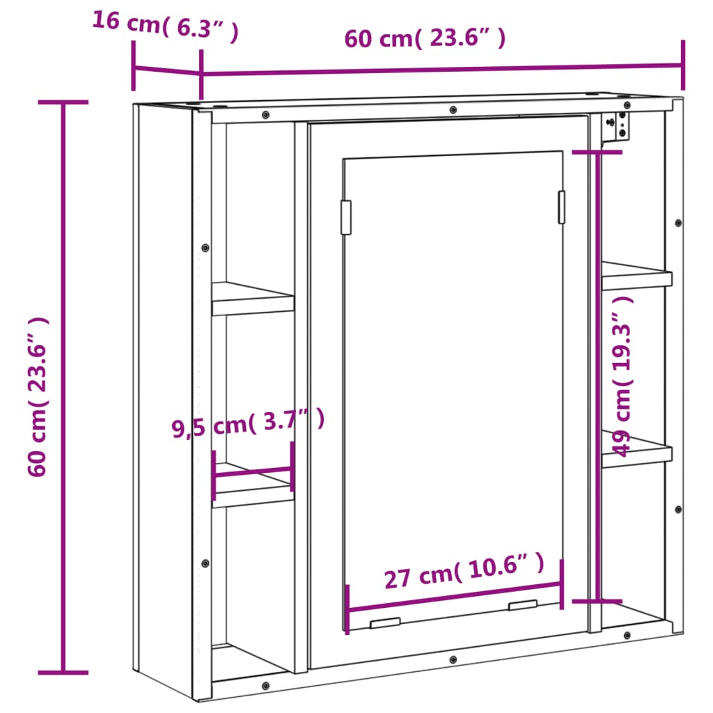 Kylpyhuoneen peilikaappi musta 60x16x60 cm tekninen puu