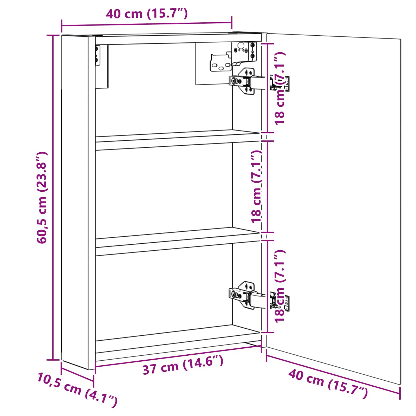 Kylpyhuoneen Peilikaappi Musta tammi. 40 x 10,5 x 60,5 cm