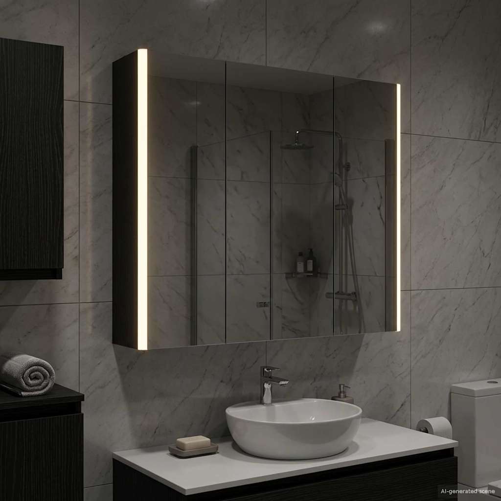 Tämä moderni kylpyhuoneen peilikaappi yhdistää tyylikkään muotoilun ja käytännölliset ominaisuudet, tehden siitä oleellisen lisän nykyaikaiseen kylpyhuoneeseen. Minimalistinen rakenne ja puhtaat linjat tarjoavat hienostuneen ilmeen, mutta kaappi on myös täynnä säilytystilaa päivittäisille tarvikkeille. Valaistus parantaa näkyvyyttä ja tunnelmaa, yhdistäen käytännöllisyyden ja muotoilun.