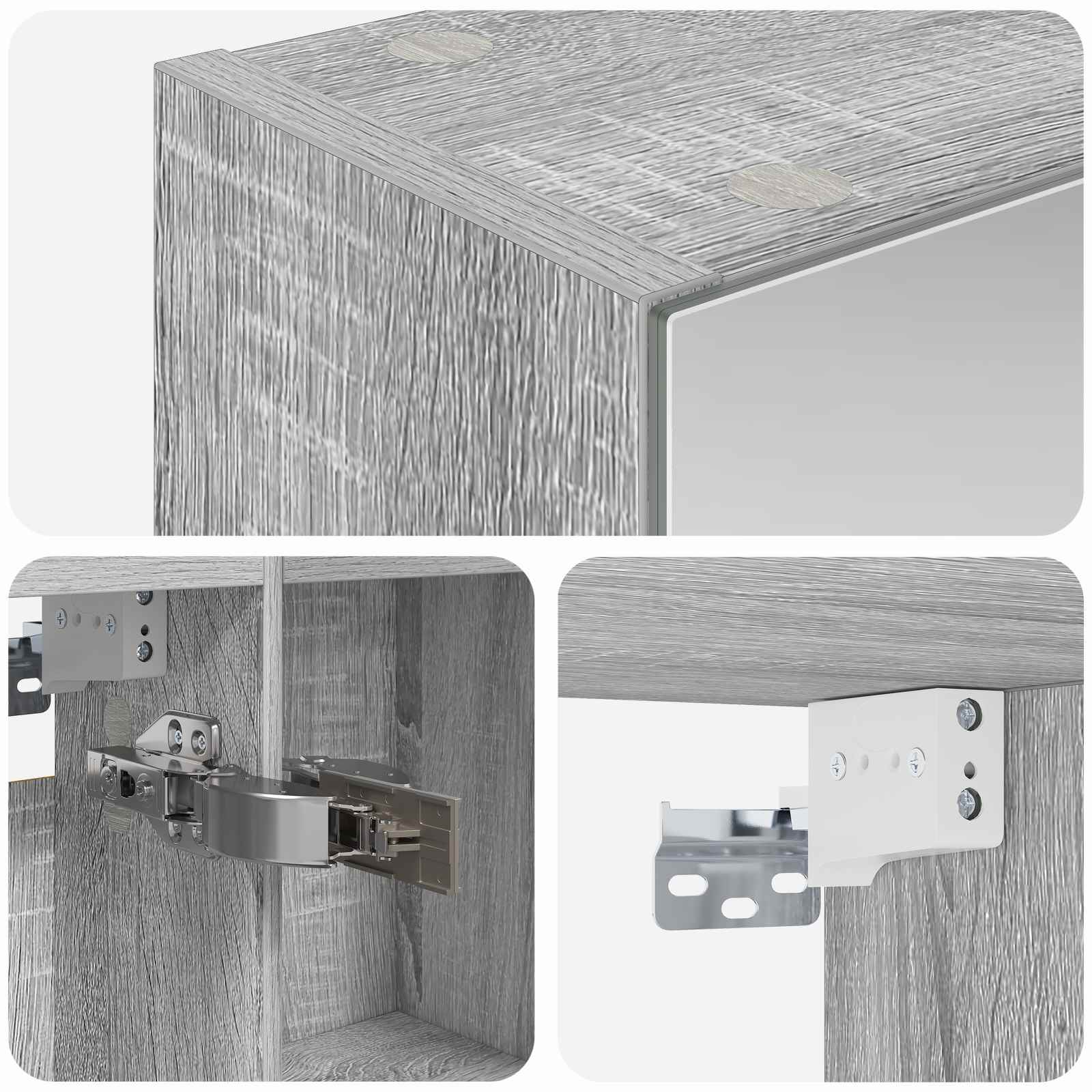 • Included Components: Kaappi sisältää kaksi korkealaatuista hyllyä, joissa on paljon tilaa hygieniatuotteille ja muille tarpeille. Peiliovi tuo avaruutta ja valoa, ja säädettävät hyllyt sopivat erikokoisille asioille.