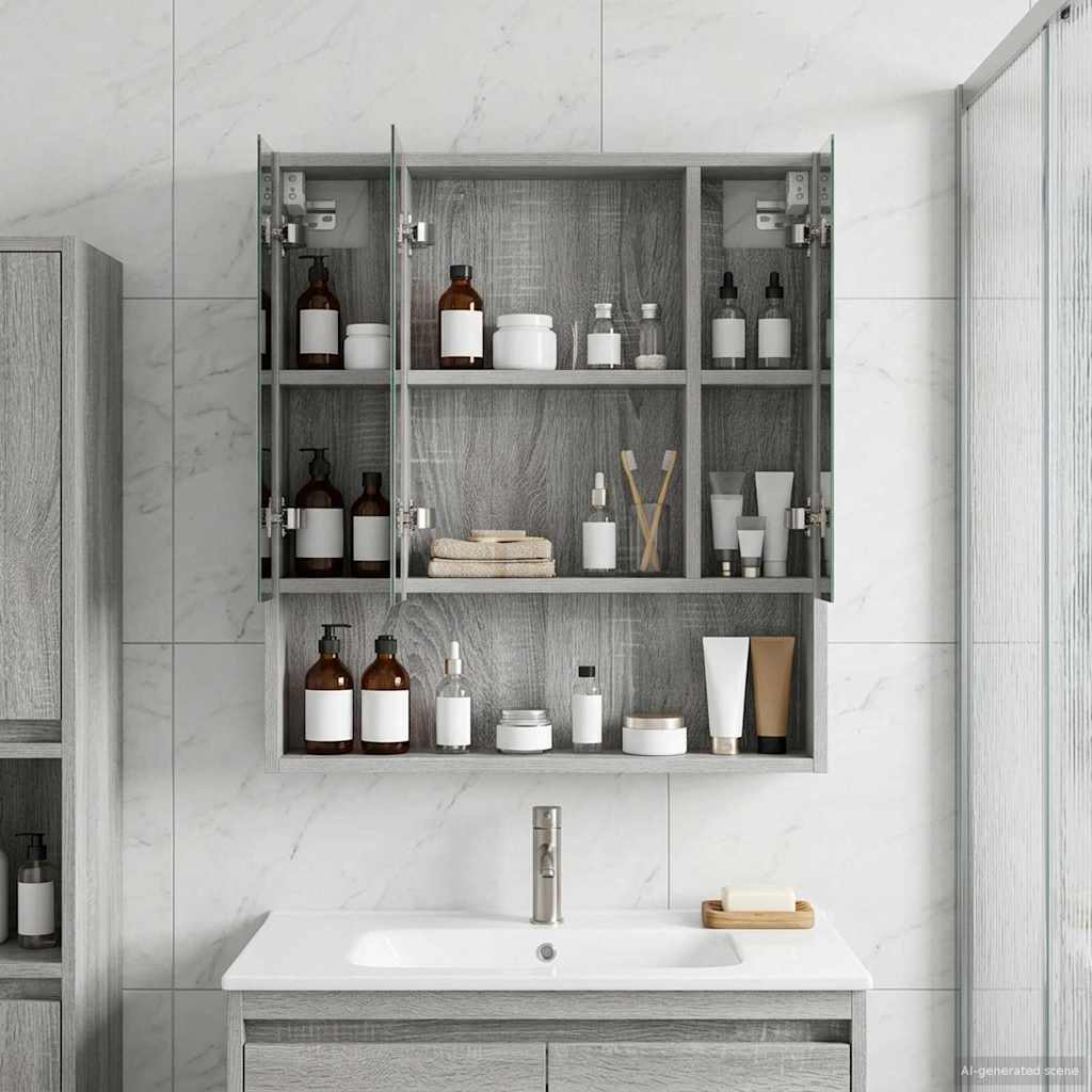 Tämä moderni kylpyhuoneen peilikaappi on hieno huonekalu, joka parantaa minkä tahansa kylpyhuoneen ilmettä. Suorakaiteen muotoinen rakenne ja seinäasennus ovat täydellisiä, jos haluat maksimoida sekä tyylin että toiminnallisuuden. Kaapissa on kaksisuuntainen peili, joka tuo sekä yksityisyyttä että eleganssia – täydellinen aamurutiineihin modernissa kylpyhuoneessa.