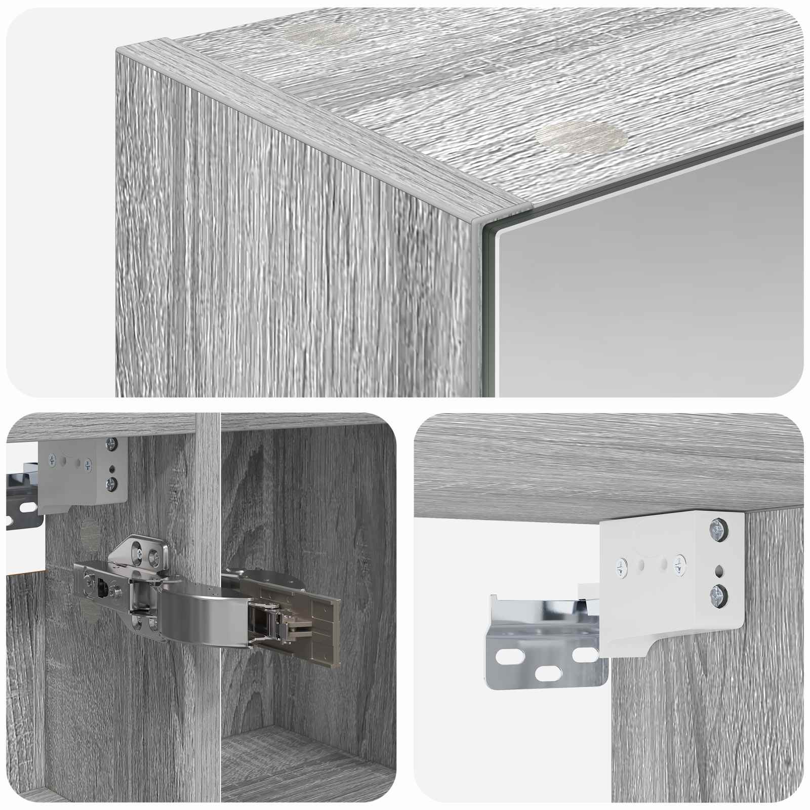 • Included Components: Kaappi tulee laattahyllyjen ja saranakannen kanssa, jotka auttavat järjestämään kylpyhuoneen tärkeimmät tavarat. Laattahyllyt soveltuvat monenlaisille esineille, hygieniatuotteista vara-pyyhkeisiin, ja saranakansi tekee avaamisesta ja sulkemisesta helppoa. Peili tarjoaa myös kaksisuuntaisen heijastuksen.