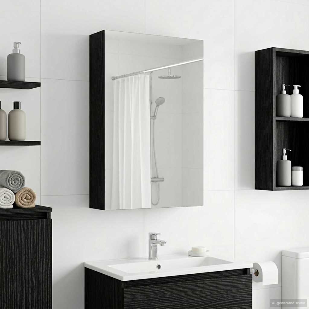 Kylpyhuoneen Peilikaappi ovella Musta tammi. 30 x 10,5 x 50 cm