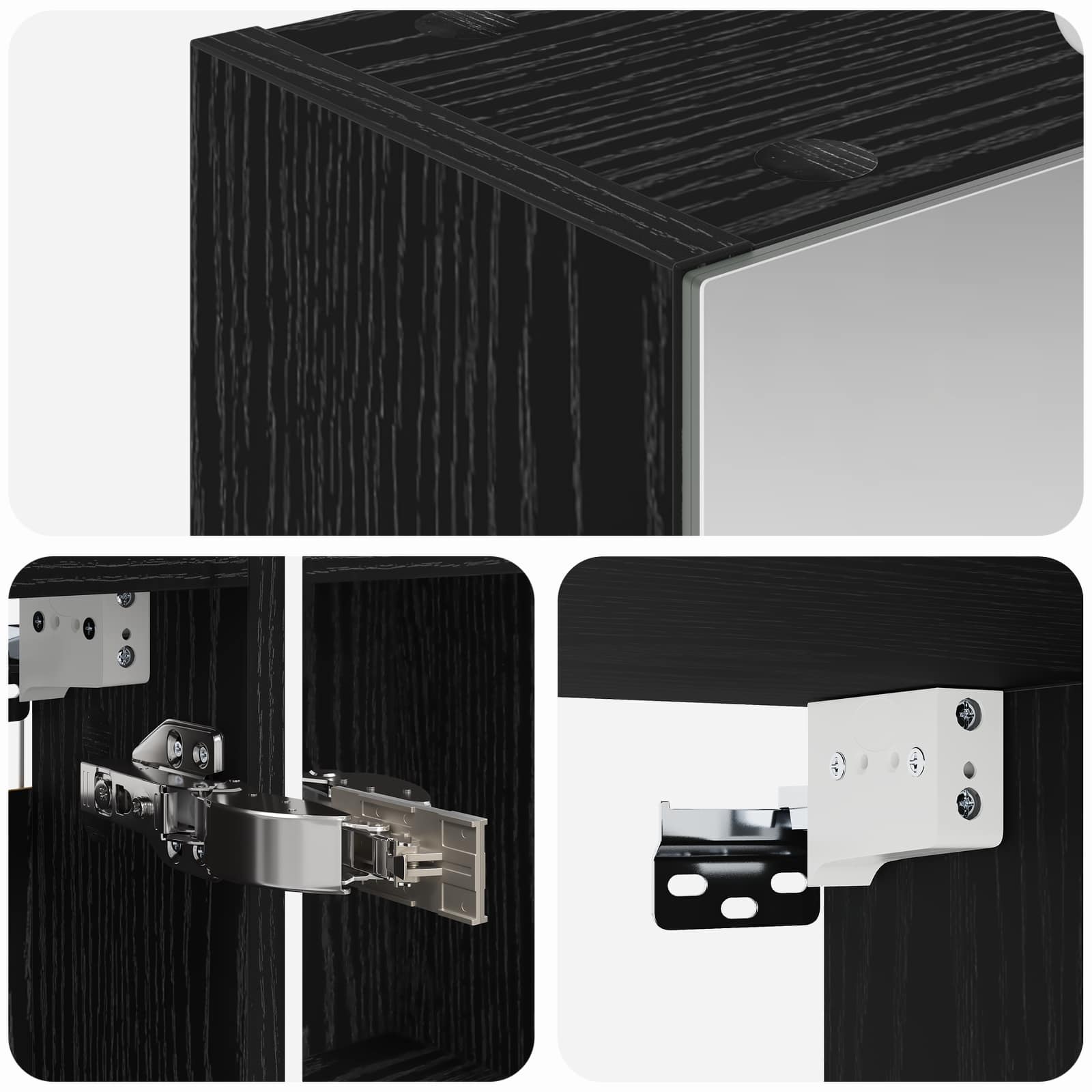 • Included Components: Kaappi sisältää kaksi korkealaatuista hyllyä, joissa on paljon tilaa hygieniatuotteille ja muille tarpeille. Peiliovi tuo avaruutta ja valoa, ja säädettävät hyllyt sopivat erikokoisille asioille.