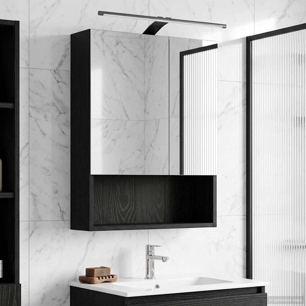 Kylpyhuoneen Peilikaappi ovella Musta tammi. 50 x 14,5 x 70 cm