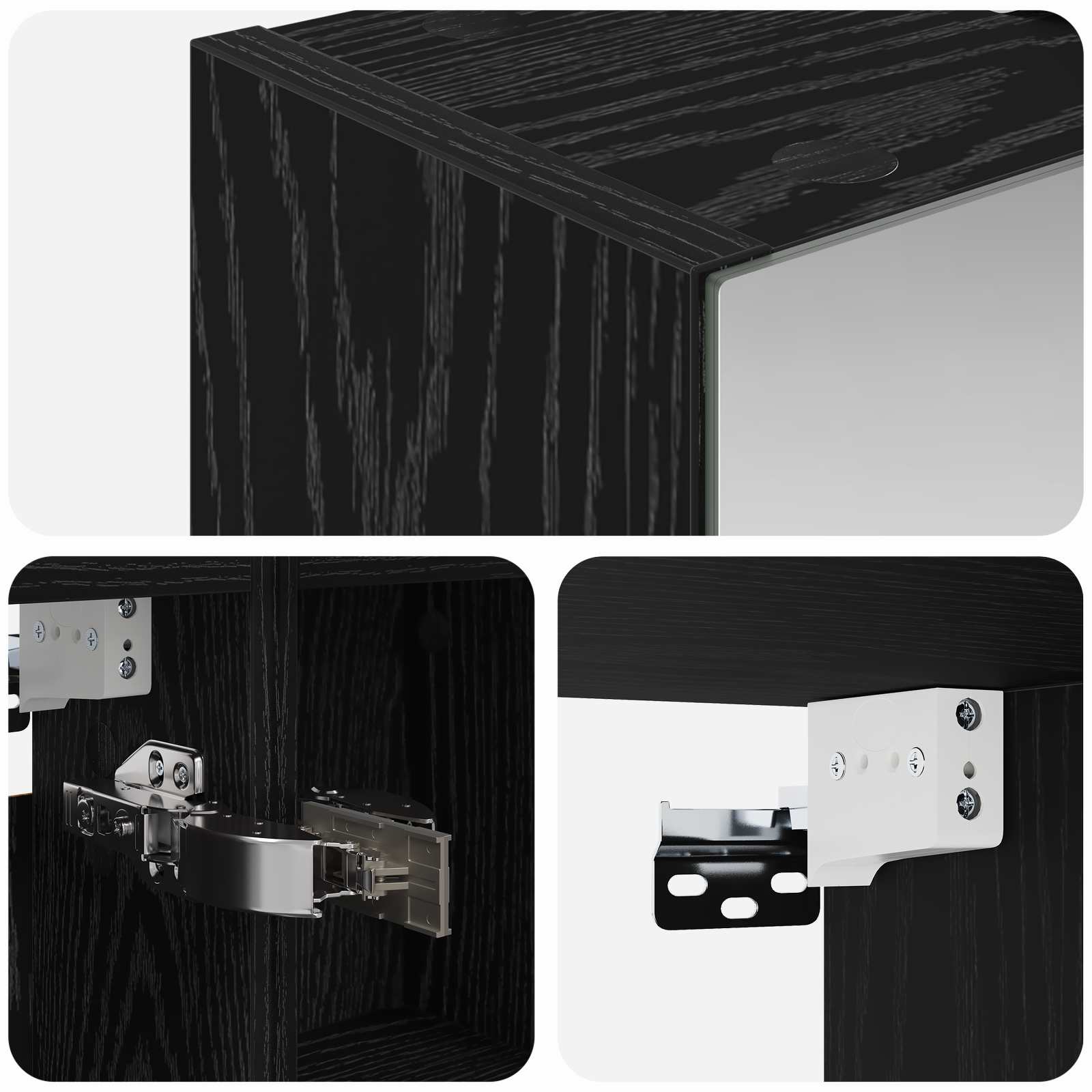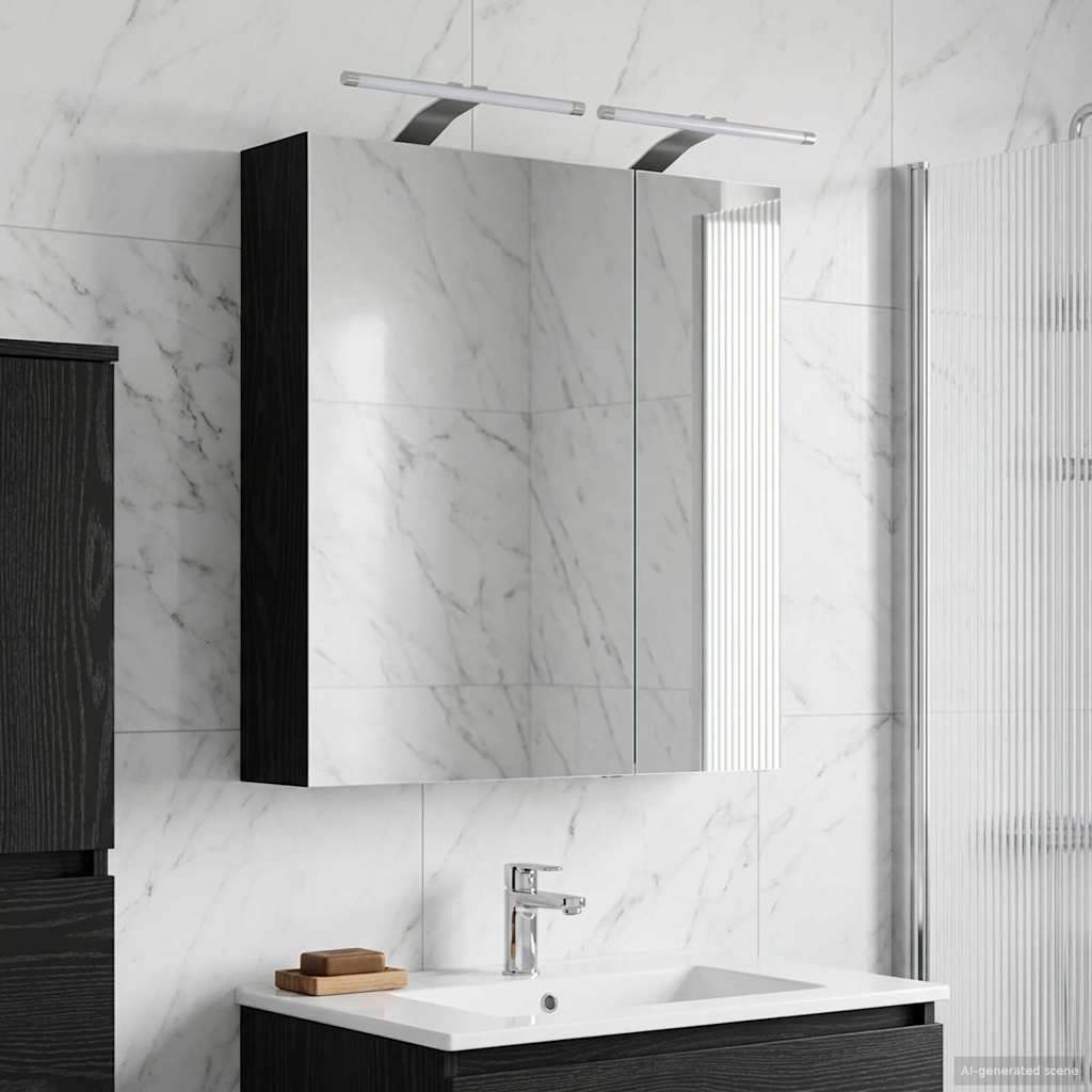 Tämä moderni kylpyhuoneen peilikaappi yhdistää tyylin ja käytännön, joten se on loistava lisä mihin tahansa kylpyhuoneeseen. Suorakaiteen muotoinen runko tuo minimalistista ilmettä, joka sopii nykyaikaisiin sisustusratkaisuihin. Se toimii sekä säilytyspaikkana että esteettisenä elementtinä, yhdistäen kaksisuuntaisen peilin ja levyhyllyt, jotta kylpyhuone pysyy siistinä ja arki sujuu paremmin.