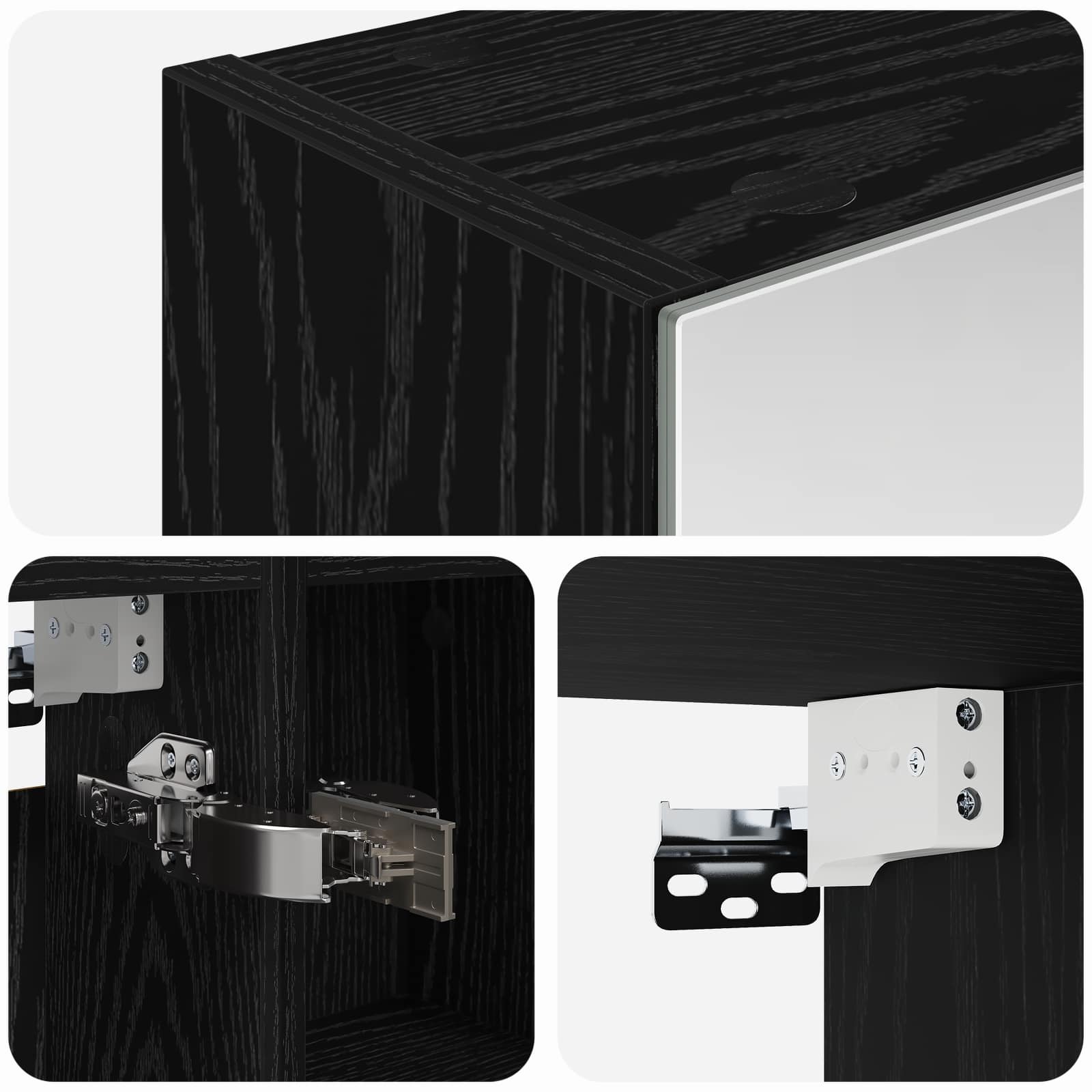 • Kaksisuuntainen peili: Kaksipuolinen peili ei vain anna käyttäjien tarkistaa ulkonäköään vaan myös käyttää kaappia ilman, että sen täytyy avata. Tämä varmistaa käytännön hyödyn ilman, että huoneen tyyli kärsii.