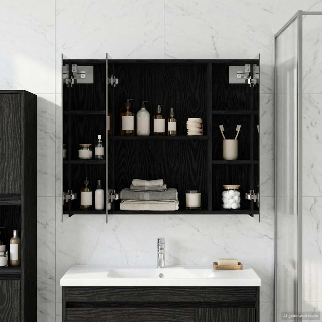 Kylpyhuoneen Peilikaappi ovella Musta tammi. 80 x 14.5 x 70 cm