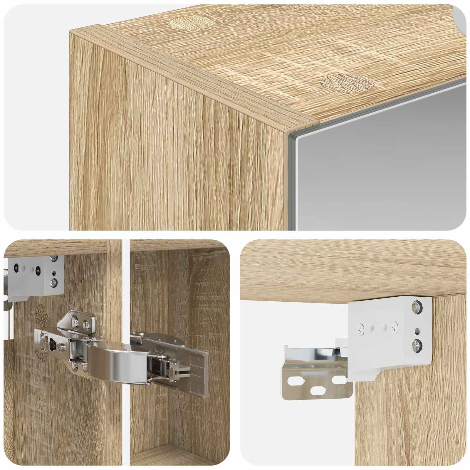 • Huolto ja ylläpito: Pyyhi kaappi säännöllisesti pehmeällä kankaalla sen kunnossapidon varmistamiseksi. Vältä hioneita kemikaaleja, jotta pinta pysyy moitteettomana. Säännöllinen puhdistus takaa, että peili pysyy kirkkaana ja kaappi näyttää hyvältä pitkään.
