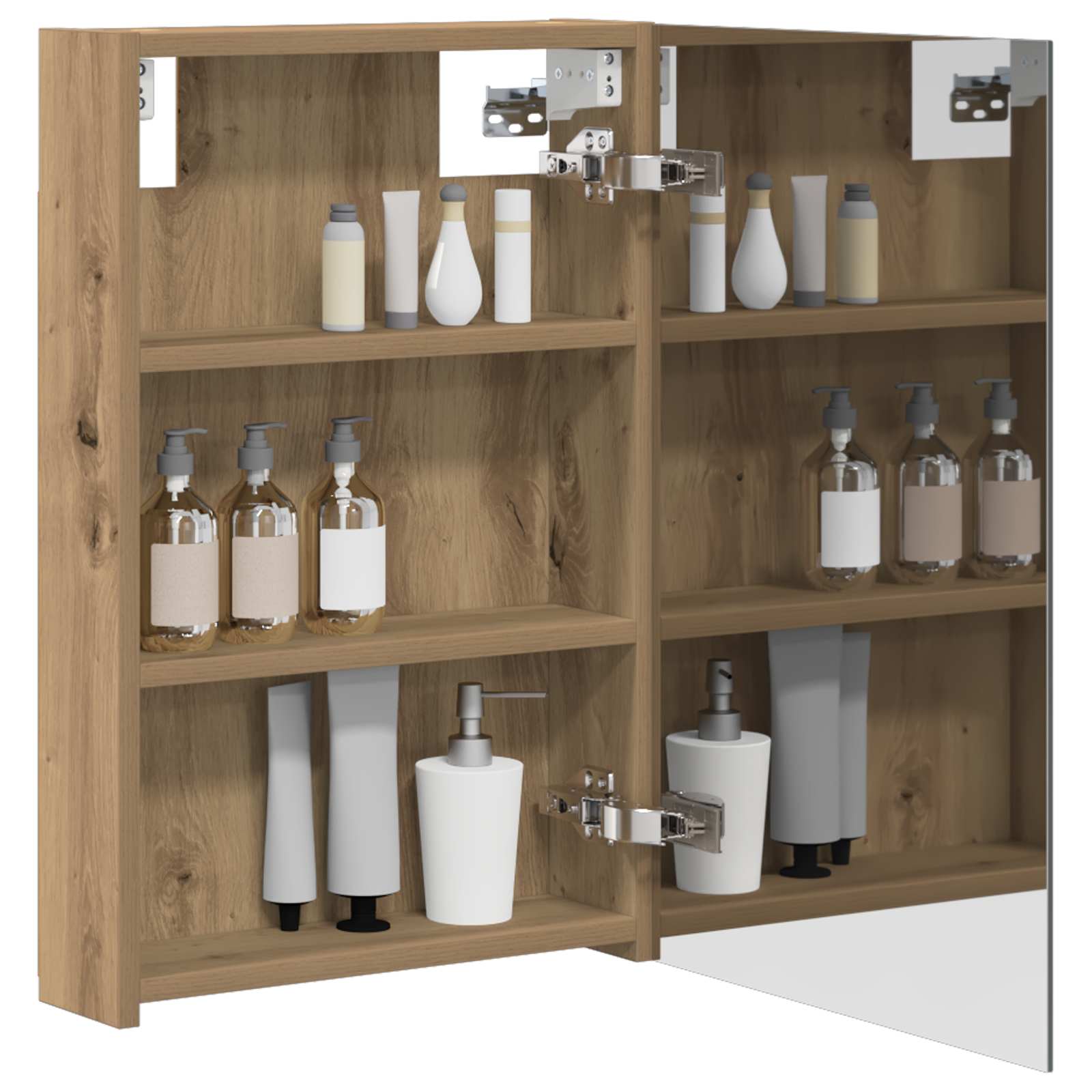 • Saranoitu Ovipääsy: Saranoitu ovi mahdollistaa helpon ja turvallisen pääsyn tuotteisiin. Sujuva avaus takaa hiljaisen käytön, mikä tekee kylpyhuoneesta rauhallisen paikan.