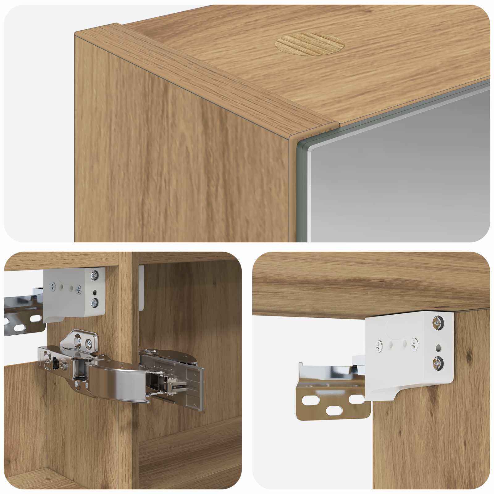 • Kaksisuuntainen Peili: Innovatiivinen kaappi, joka toimii sekä tavallisena peilinä että säästää tilaa huomaamattomilla heijastuksilla. Täydellinen vaihtoehto erilaisiin käyttötarkoituksiin.