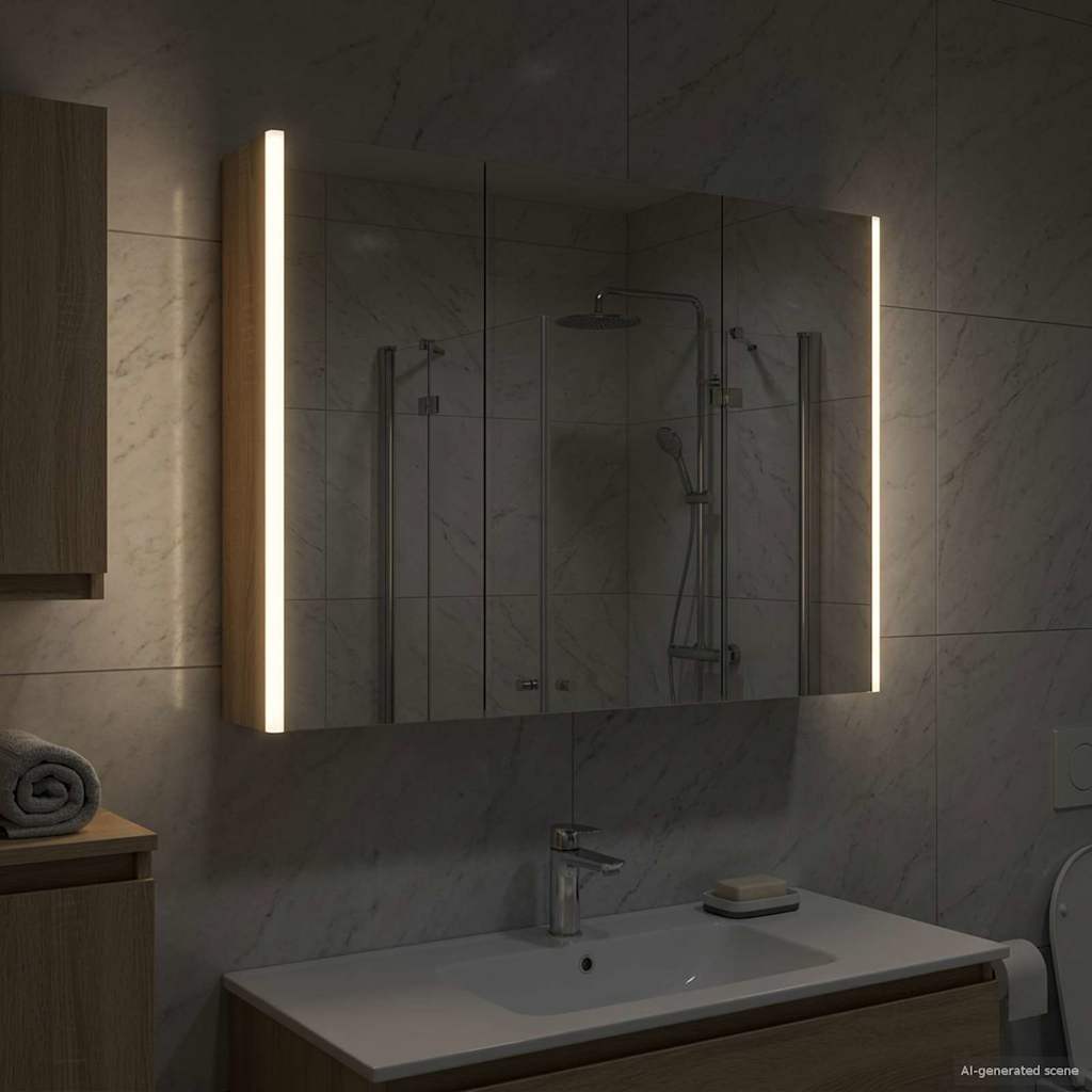 Tämä moderni kylpyhuoneen peilikaappi yhdistää tyylikkään muotoilun ja käytännölliset ominaisuudet, tehden siitä oleellisen lisän nykyaikaiseen kylpyhuoneeseen. Minimalistinen rakenne ja puhtaat linjat tarjoavat hienostuneen ilmeen, mutta kaappi on myös täynnä säilytystilaa päivittäisille tarvikkeille. Valaistus parantaa näkyvyyttä ja tunnelmaa, yhdistäen käytännöllisyyden ja muotoilun.