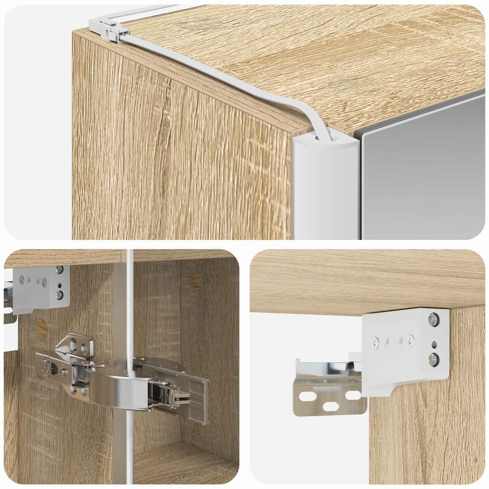 • Kaksisuuntainen peili Kaapissa on kaksisuuntainen peili, joka yhdistää heijastavuuden ja läpinäkyvyyden. Tämä häivyttää kauneudenhoitoasiat ja tarjoaa samalla turvallisuutta.