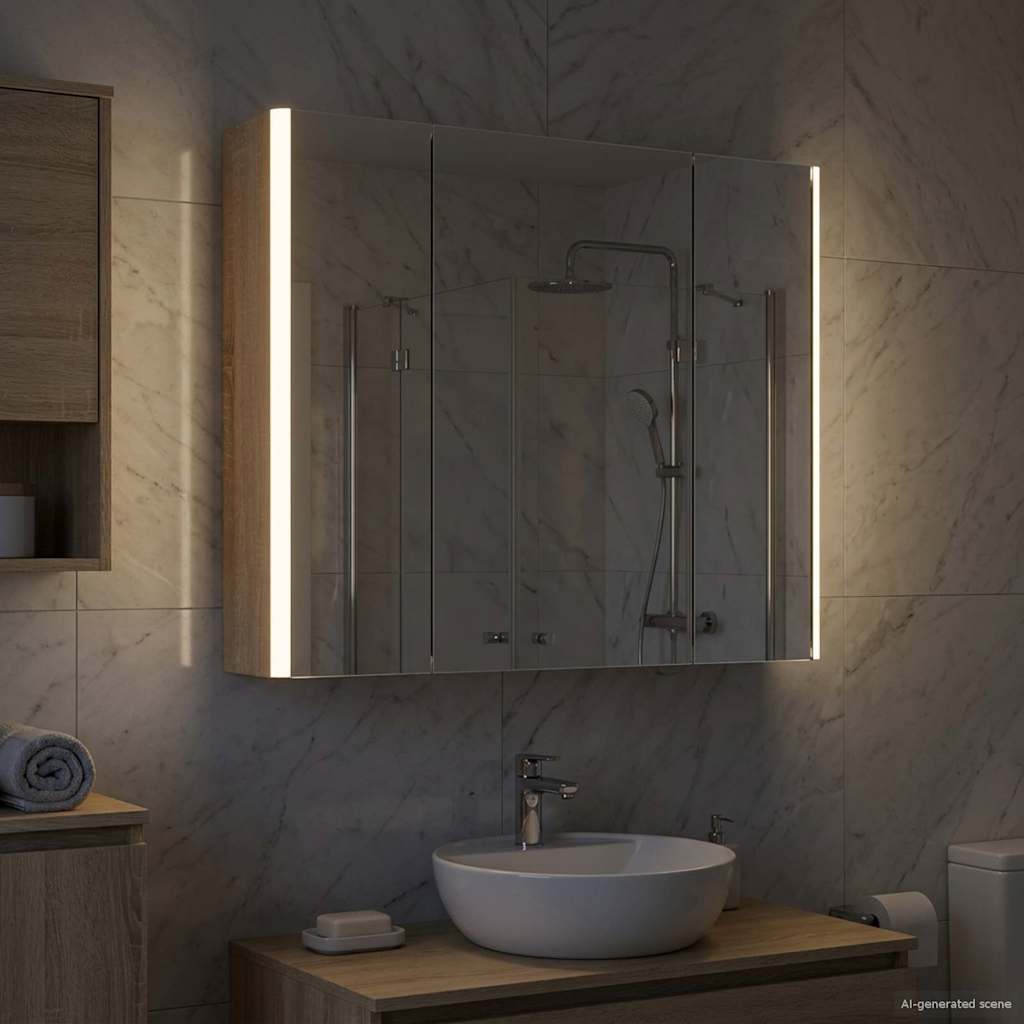 Tämä moderni kylpyhuoneen peilikaappi yhdistää tyylikkään muotoilun ja käytännölliset ominaisuudet, tehden siitä oleellisen lisän nykyaikaiseen kylpyhuoneeseen. Minimalistinen rakenne ja puhtaat linjat tarjoavat hienostuneen ilmeen, mutta kaappi on myös täynnä säilytystilaa päivittäisille tarvikkeille. Valaistus parantaa näkyvyyttä ja tunnelmaa, yhdistäen käytännöllisyyden ja muotoilun.