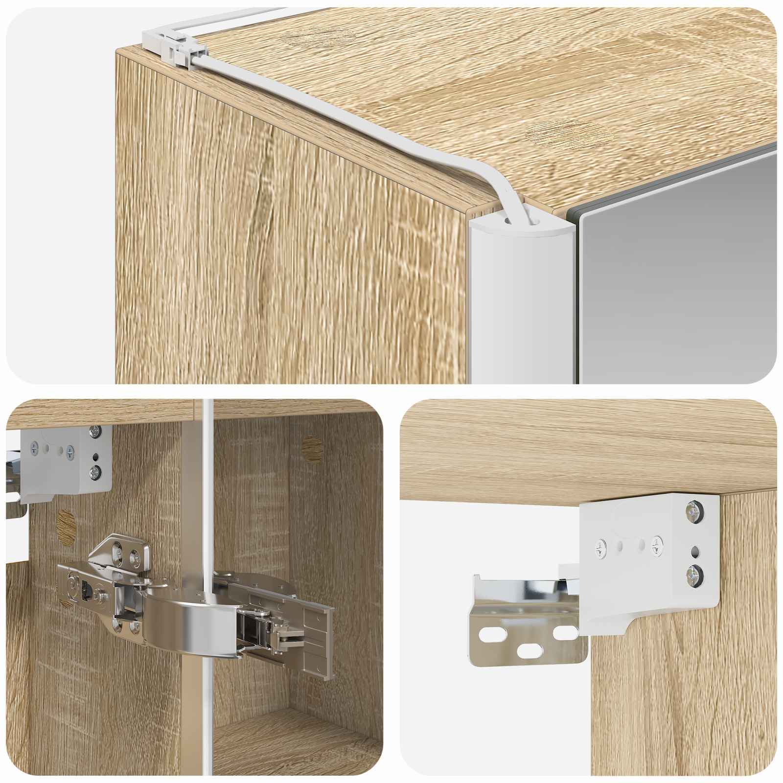 • Kaksisuuntainen peili Kaapissa on kaksisuuntainen peili, joka yhdistää heijastavuuden ja läpinäkyvyyden. Tämä häivyttää kauneudenhoitoasiat ja tarjoaa samalla turvallisuutta.