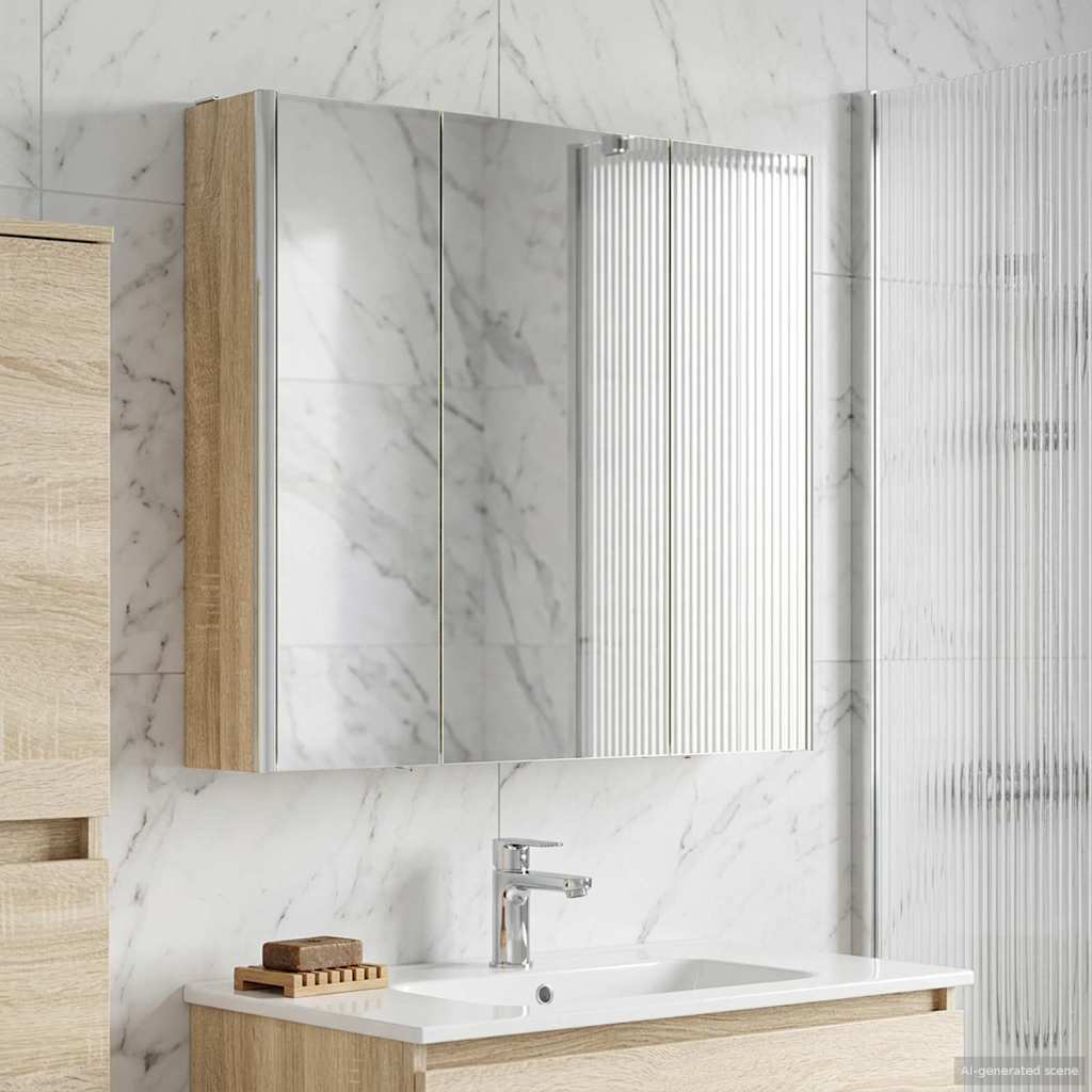 Tämä moderni kylpyhuoneen peilikaappi yhdistää tyylikkään muotoilun ja käytännölliset ominaisuudet, tehden siitä oleellisen lisän nykyaikaiseen kylpyhuoneeseen. Minimalistinen rakenne ja puhtaat linjat tarjoavat hienostuneen ilmeen, mutta kaappi on myös täynnä säilytystilaa päivittäisille tarvikkeille. Valaistus parantaa näkyvyyttä ja tunnelmaa, yhdistäen käytännöllisyyden ja muotoilun.