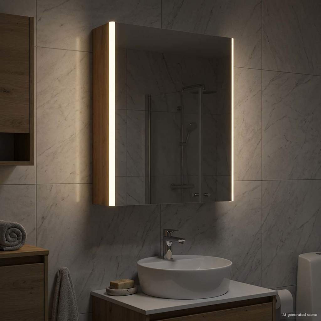 Tämä moderni kylpyhuoneen peilikaappi yhdistää tyylikkään muotoilun ja käytännölliset ominaisuudet, tehden siitä oleellisen lisän nykyaikaiseen kylpyhuoneeseen. Minimalistinen rakenne ja puhtaat linjat tarjoavat hienostuneen ilmeen, mutta kaappi on myös täynnä säilytystilaa päivittäisille tarvikkeille. Valaistus parantaa näkyvyyttä ja tunnelmaa, yhdistäen käytännöllisyyden ja muotoilun.